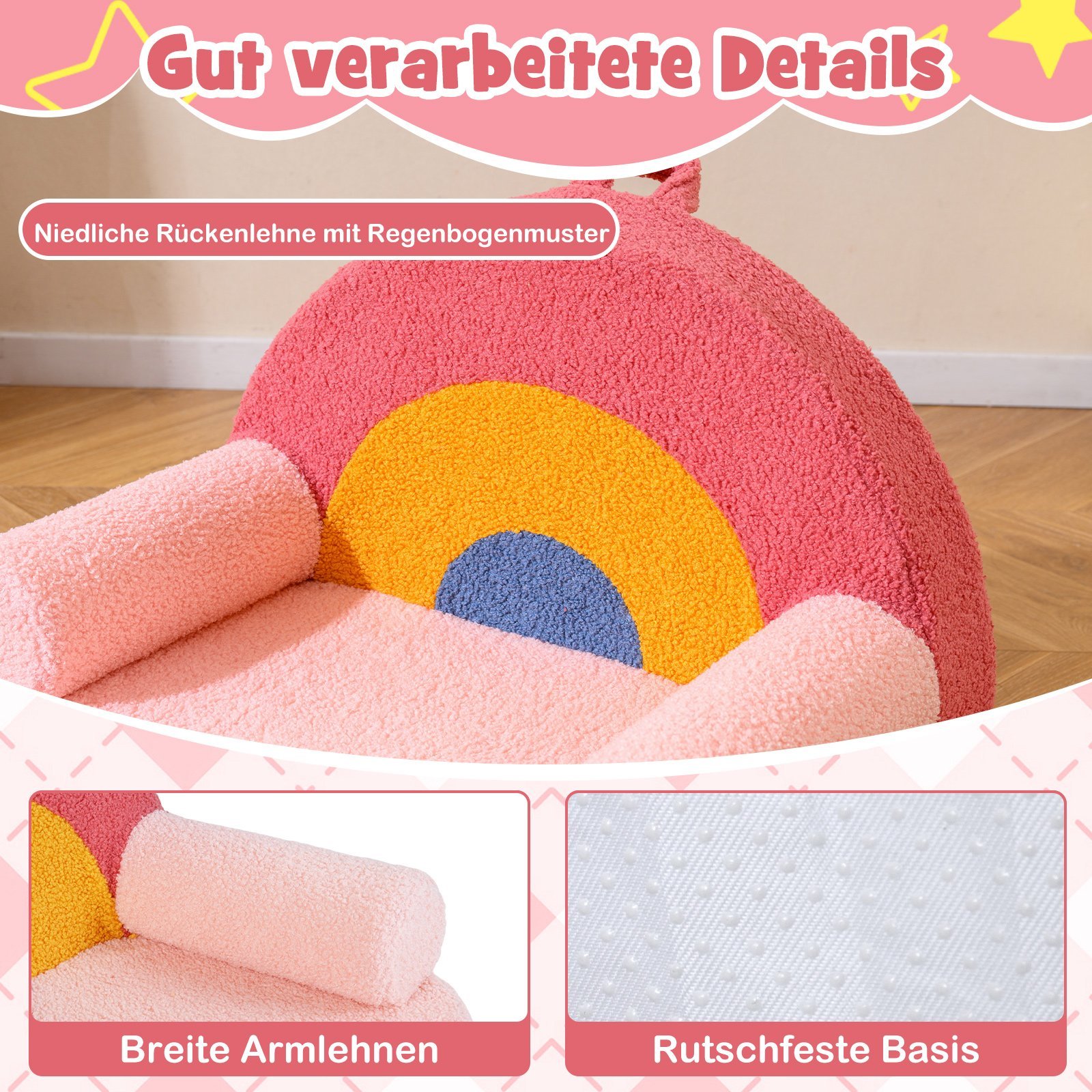 Mėgaukitės neprilygstamu komfortu ir ergonomišku dizainu su šia inovatyvia vaikiška sofa, sukurta sveikai sėdėsenai ir maksimaliam saugumui. Jos itin minkšta sėdimoji dalis, apvilkta „Teddy“ pliušu ir užpildyta didelio tankio putplasčiu, užtikrina išskirtinį patogumą.