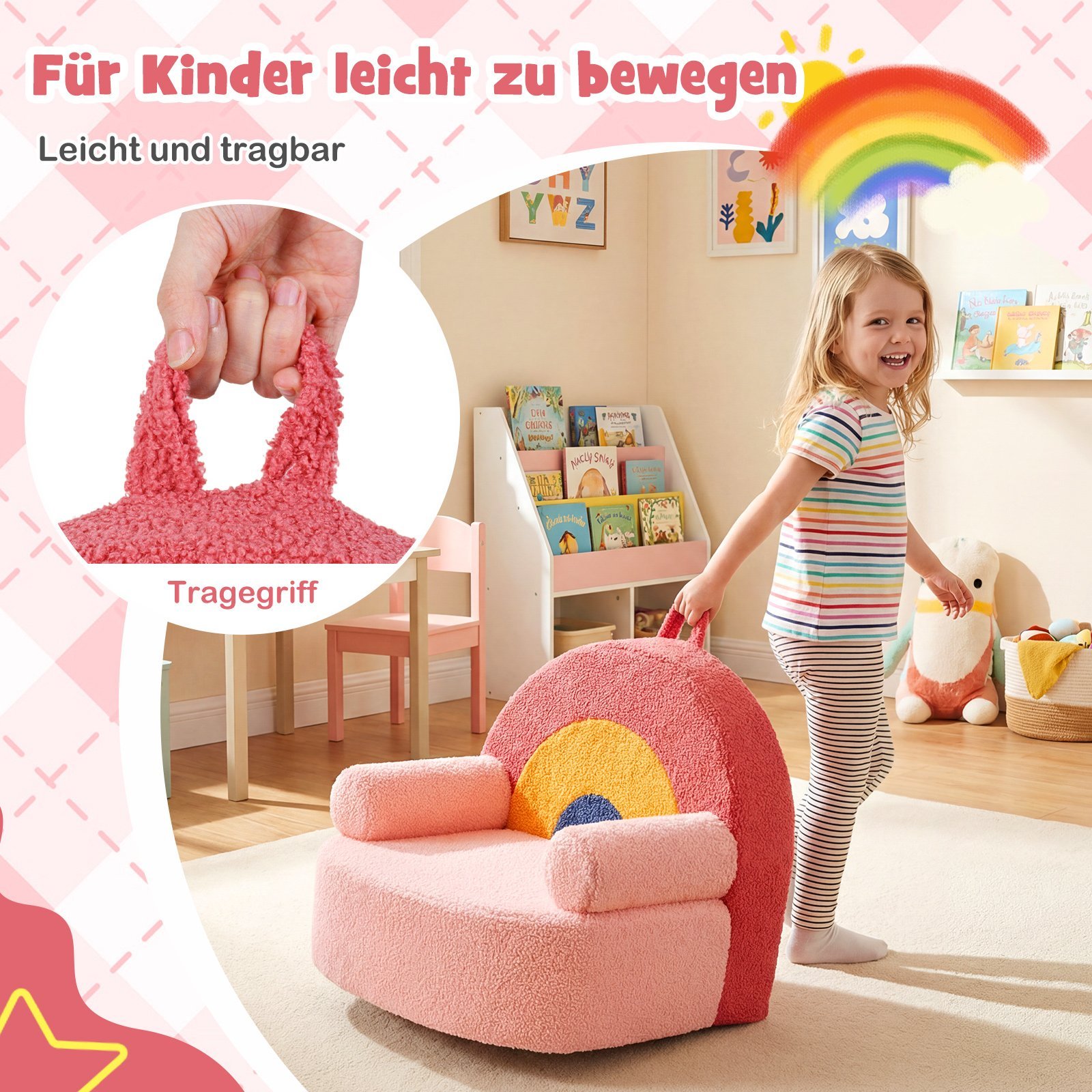 Ergonomiškas vaikiškas sofa-fotelis su didelio tankio putplasčiu (Rožinė)