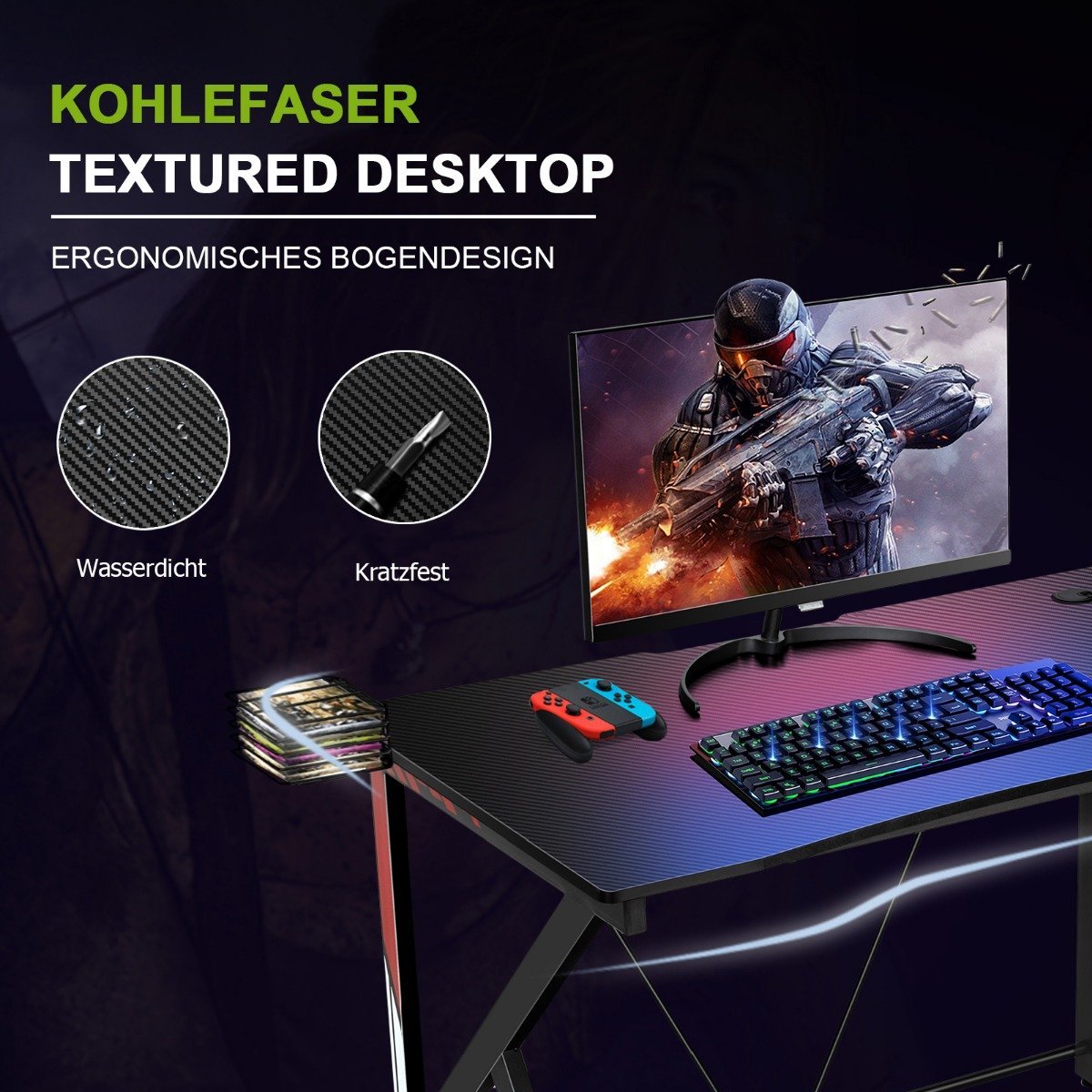 Ergonomiškas žaidimų kompiuterio stalas su laikikliais (Juoda)