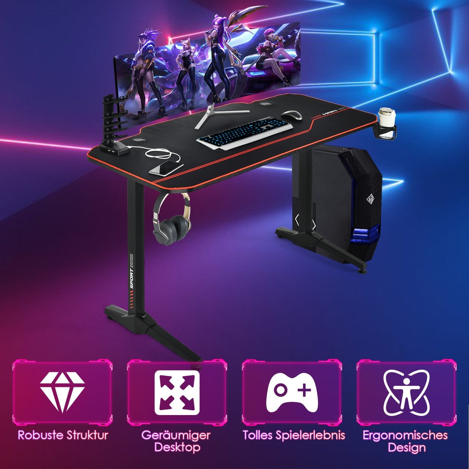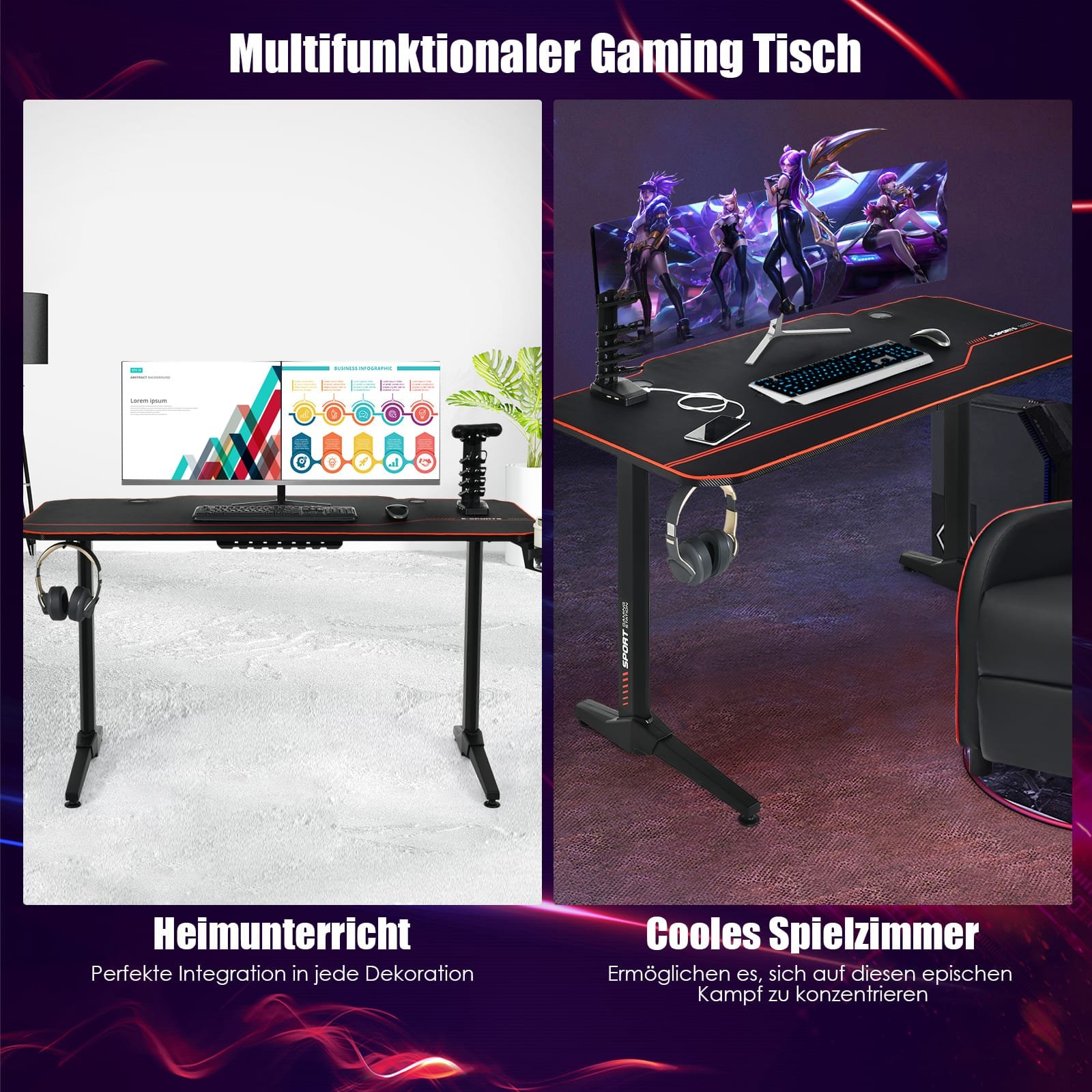 Pakylėkite savo žaidimų patirtį į naują lygį su šiuo profesionaliu, ergonomiškos konstrukcijos žaidimų stalu. Sukurtas maksimaliam komfortui ir funkcionalumui, šis stalas padės jums visiškai susitelkti į pergalę. Jis siūlo pakankamai vietos visai jūsų žaidimų įrangai ir užtikrina patogią prieigą prie svarbiausių priedų.