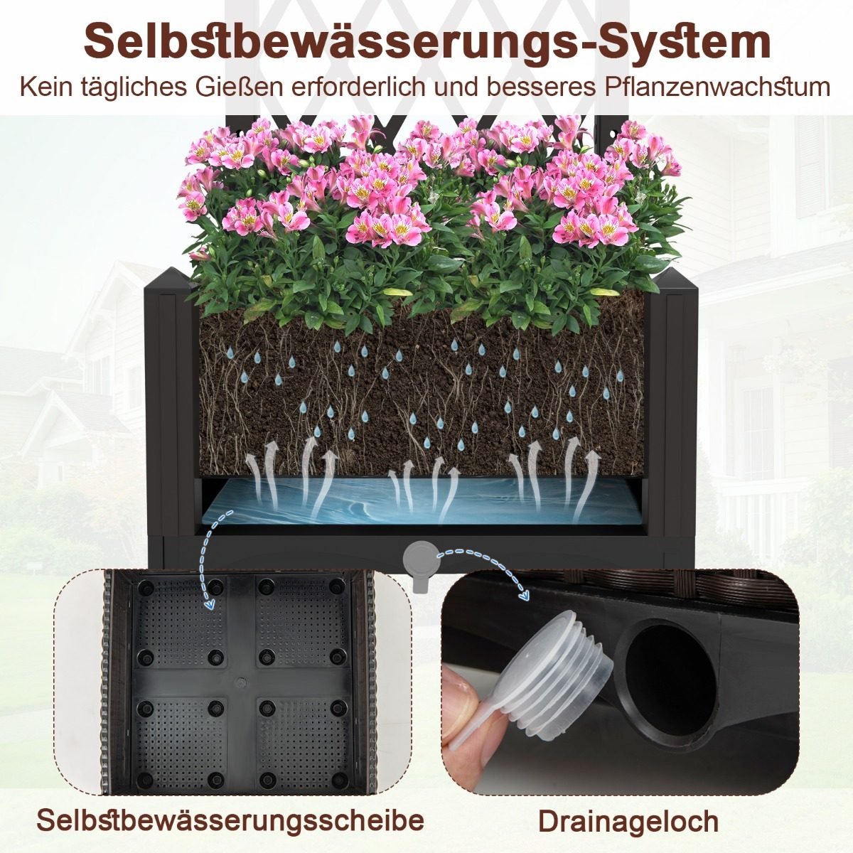 - Praktiška savaime laistanti sistema optimizuoja drėkinimą ir drenažą.