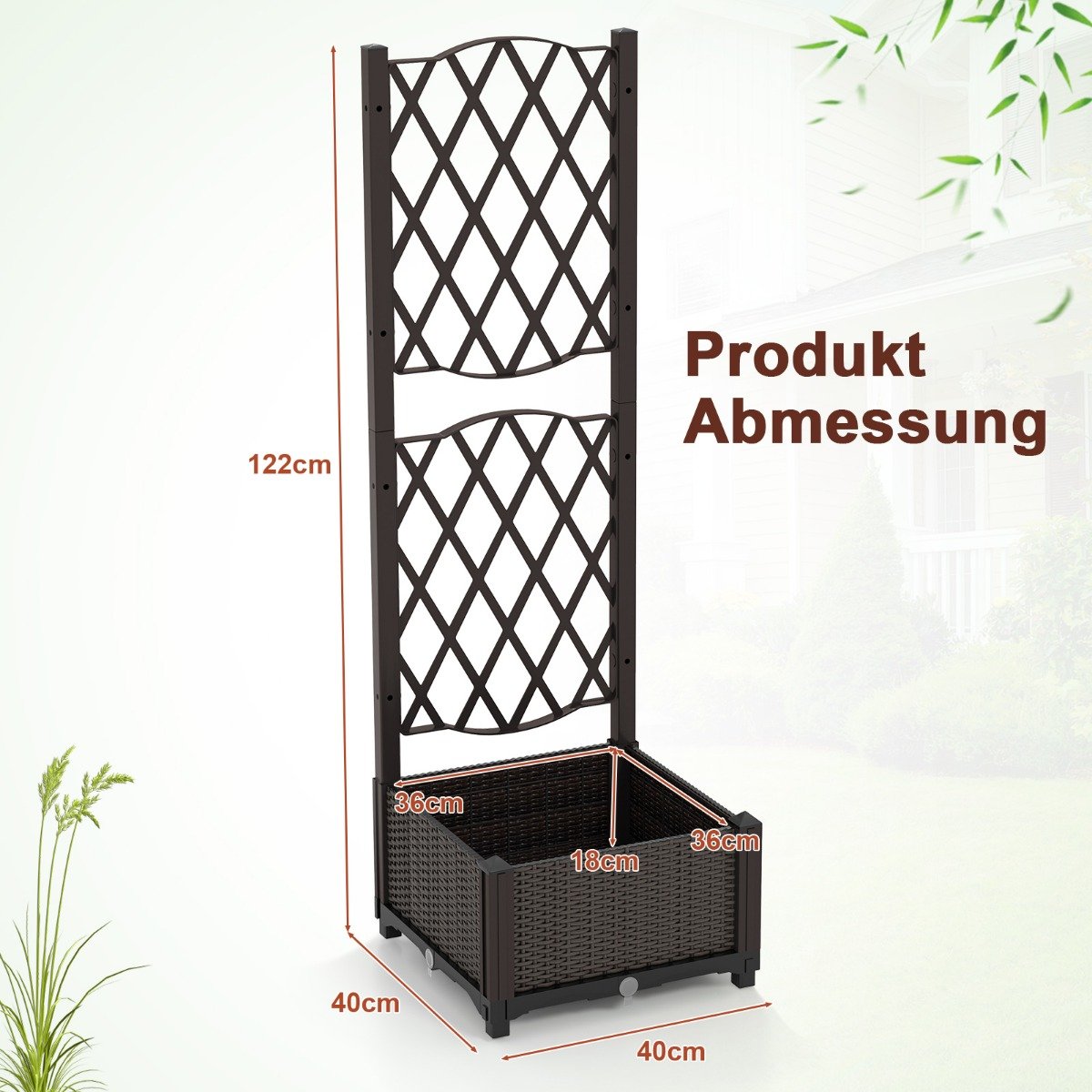 Atnaujinkite savo sodą ar balkoną su šiuo universaliu gėlynu, papuoštu atramine konstrukcija kylančioms gėlėms. Tai puikus sprendimas daržovėms, gėlėms, žolelėms ar vaisiams auginti, suteikiantis jūsų aplinkai elegancijos.