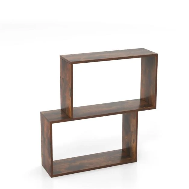 Geometrinė 3 aukštų knygų lentyna su 2 kubinėmis nišomis (Ruda)