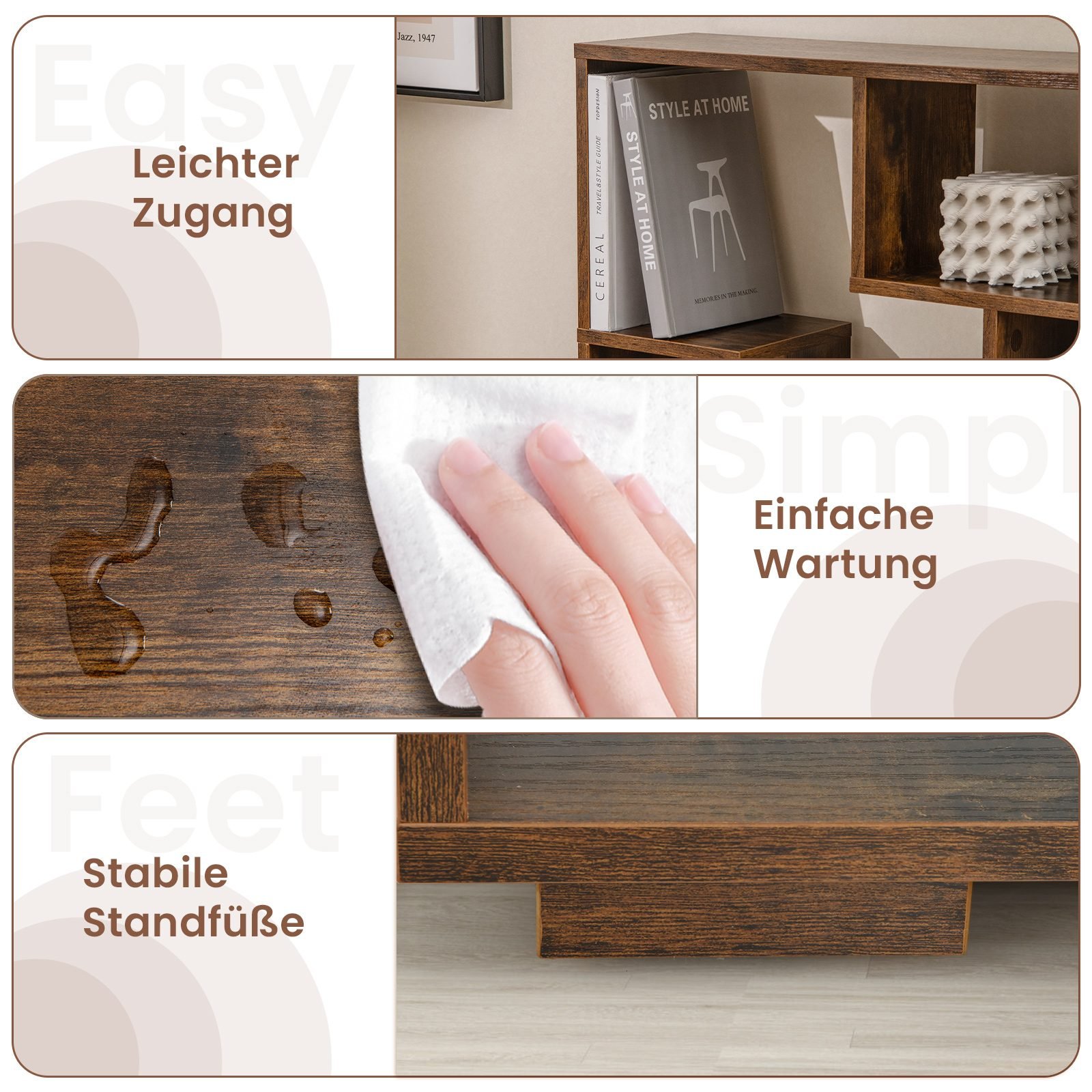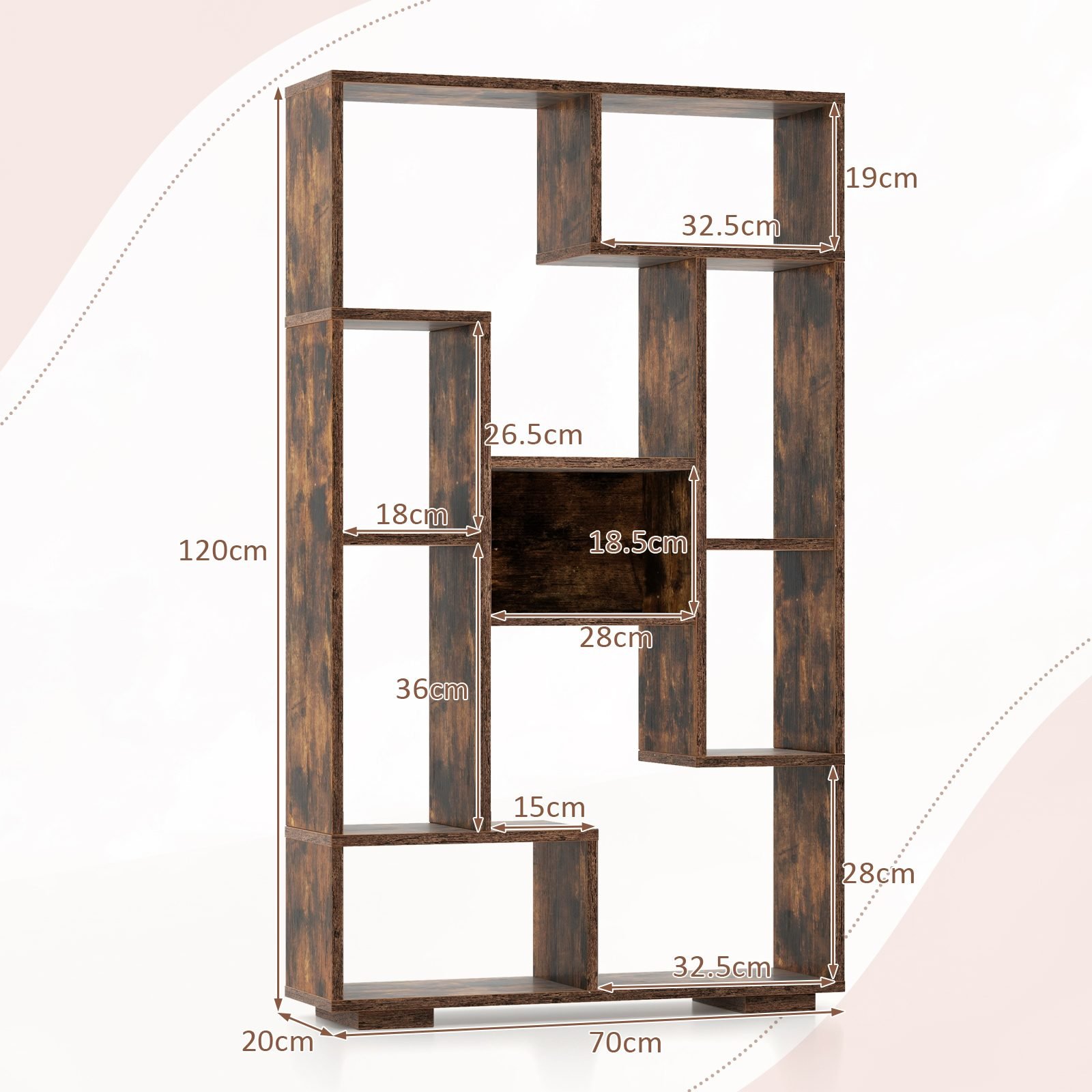 Geometrinė daugiafunkcė lentyna su atviromis erdvėmis (Ruda)