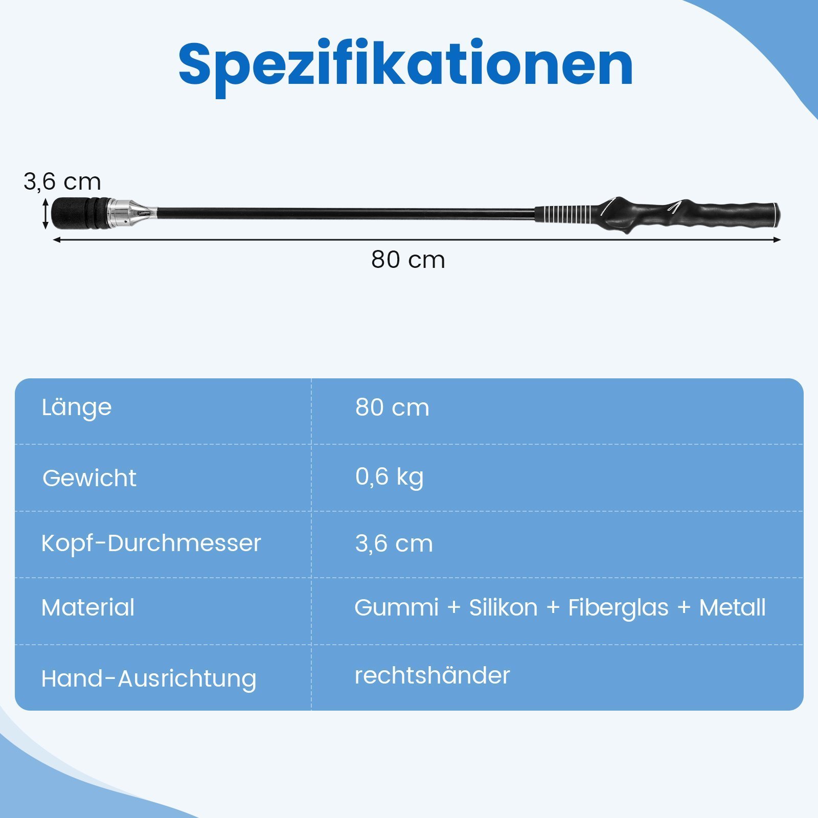 - Aukštos kokybės medžiagos: metalinė, pasunkinta galvutė ir lankstus stiklo pluošto strypas užtikrina ilgaamžiškumą ir efektyvų treniruočių procesą.