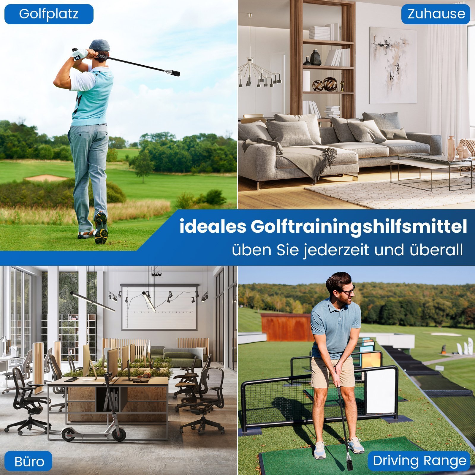 - Patogios treniruotės bet kur: kompaktiškas ir nešiojamas dizainas leidžia treniruotis namuose, biure ar golfo aikštyne.