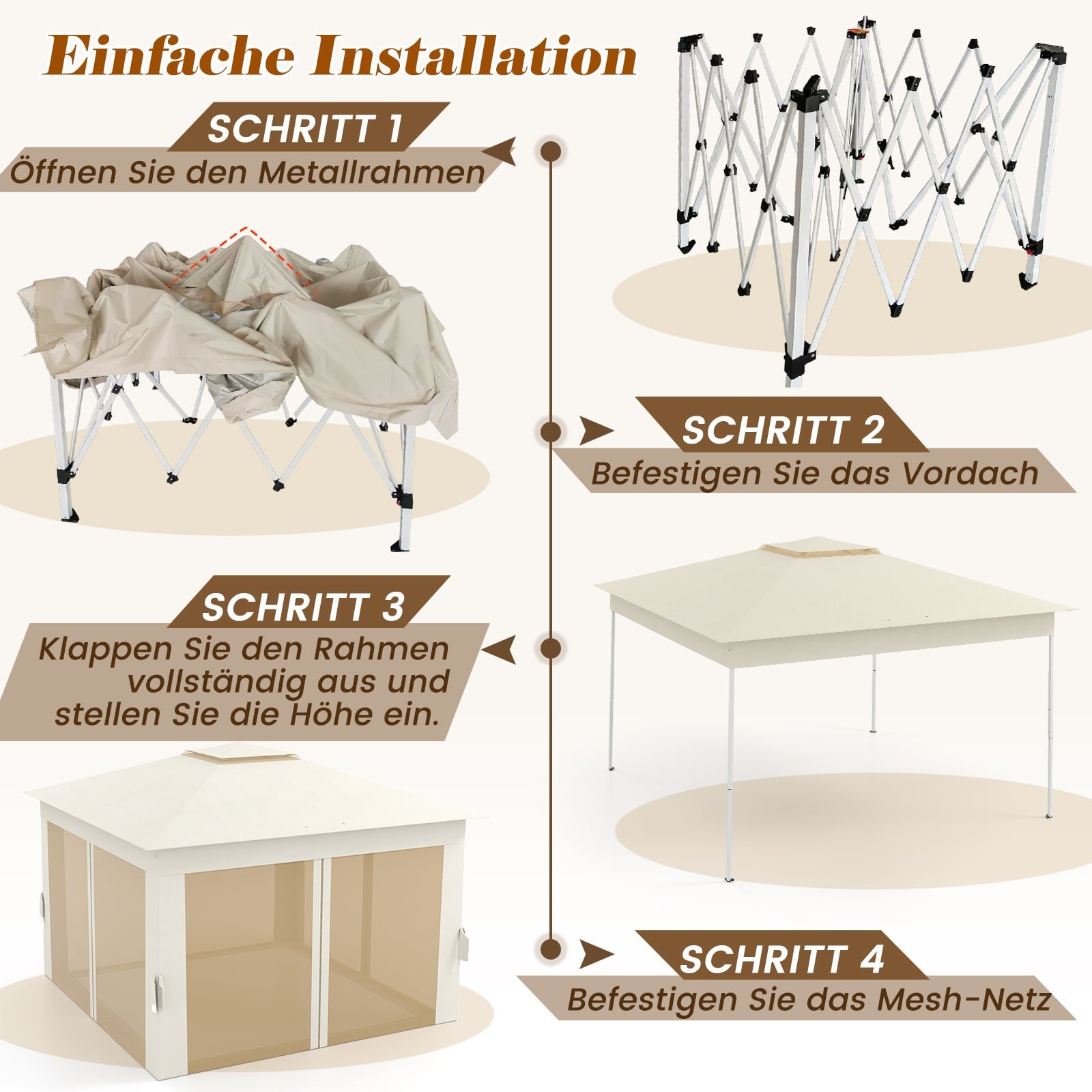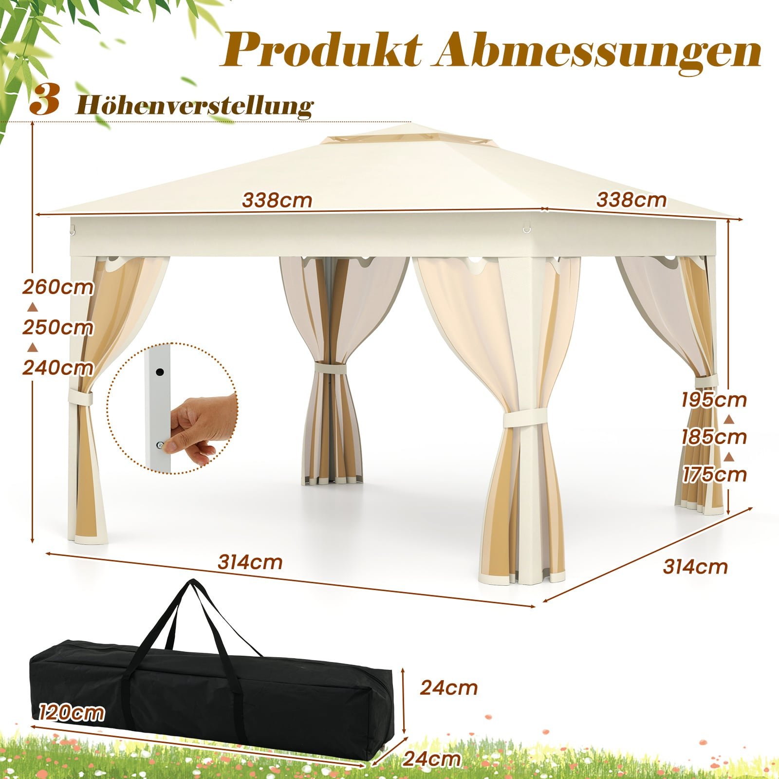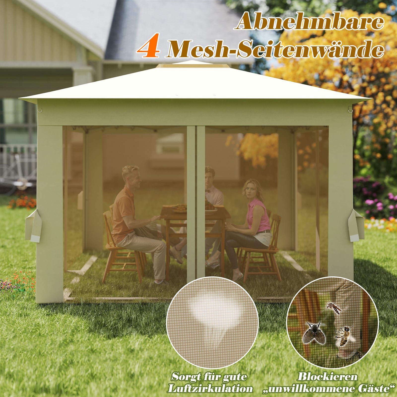 Greito surinkimo dvigubo stogo pavėsinė su tinkleliu nuo vabzdžių (Smėlio spalva)