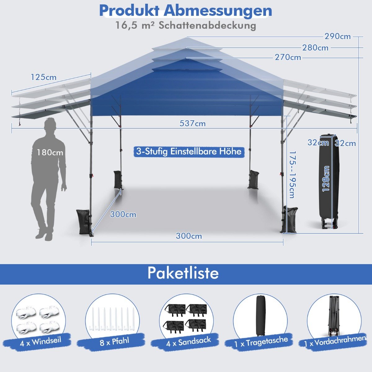 Greito surinkimo lauko renginių pavėsinė 300 x 537 cm (Mėlyna)