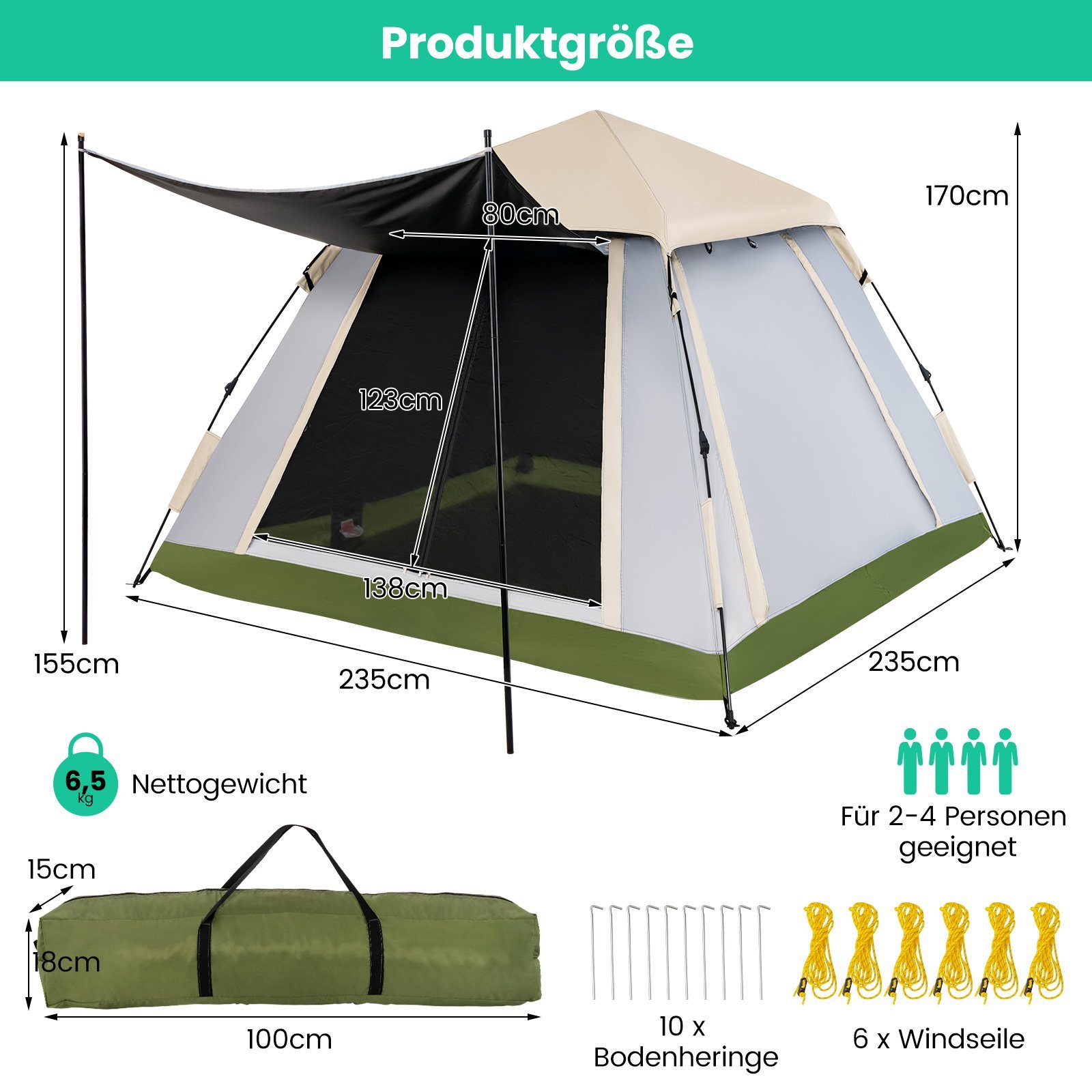 Greito surinkimo palapinė 2-4 asmenims (Žalia)