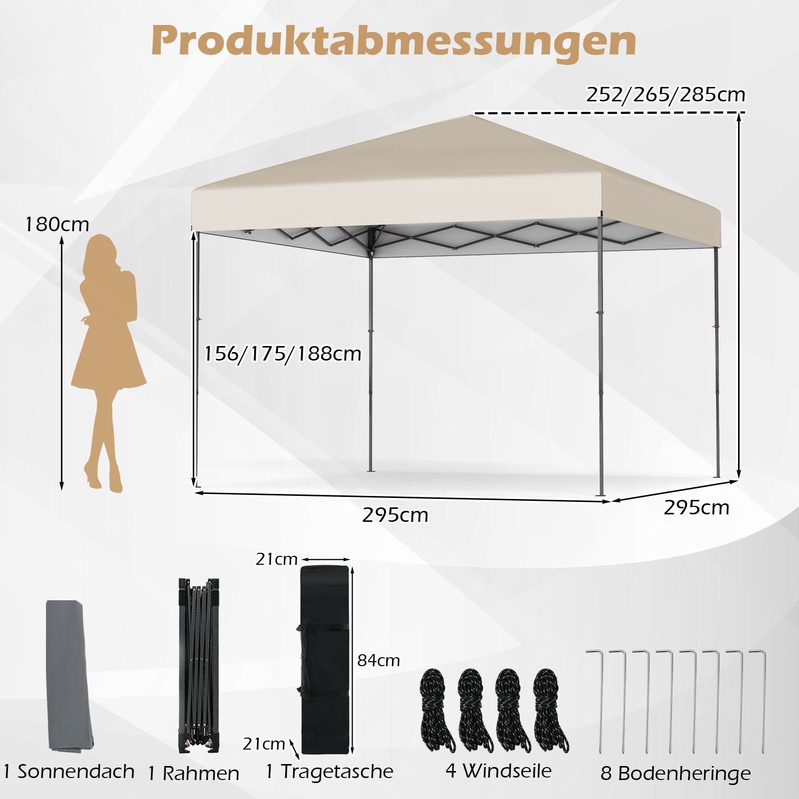 - Produkto matmenys: 295 x 295 x 253–285 cm (Ilgis x Plotis x Aukštis)