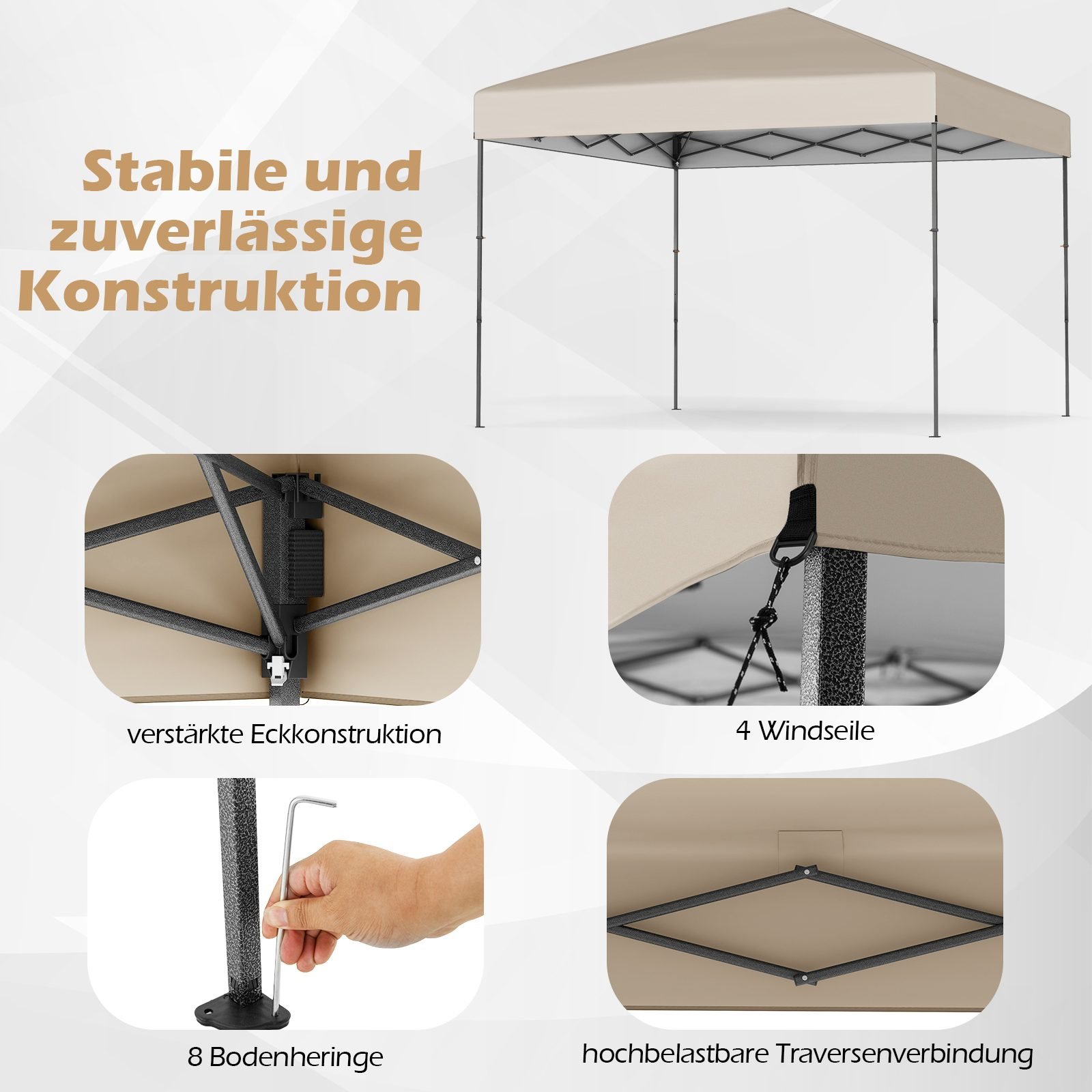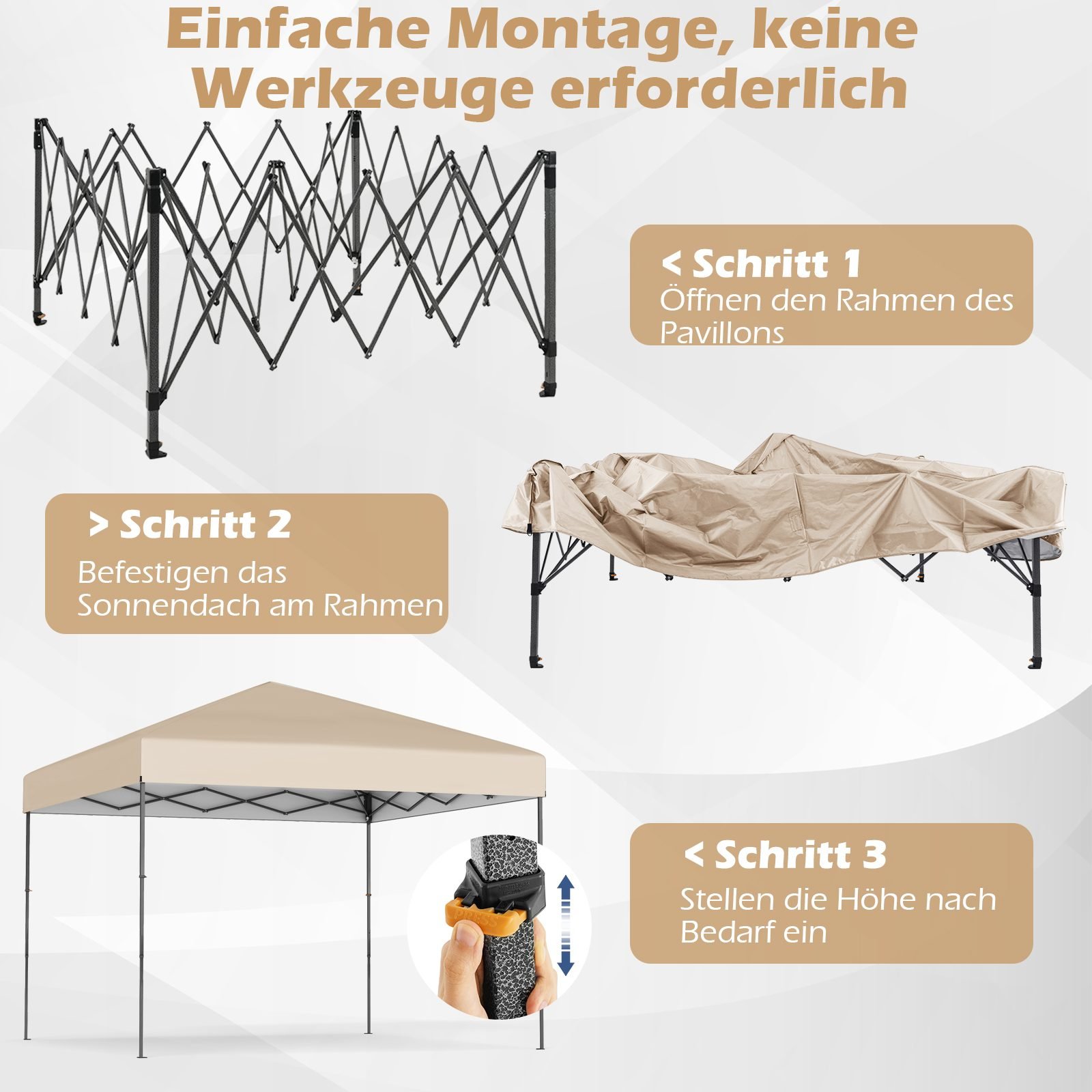 - Reguliuojamas aukštis leidžia pritaikyti paviljoną pagal individualius poreikius.