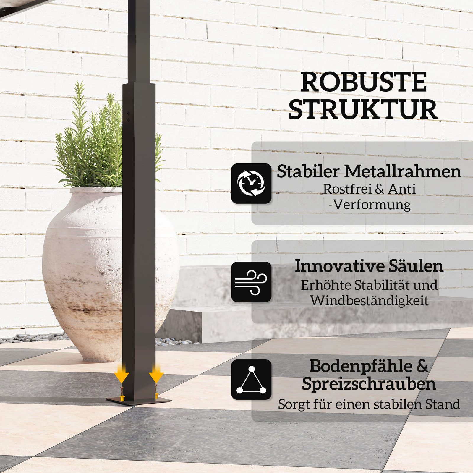 ✔ Atsparus oro sąlygoms, milteliniu būdu dengtas metalinis rėmas padidina patvarumą.