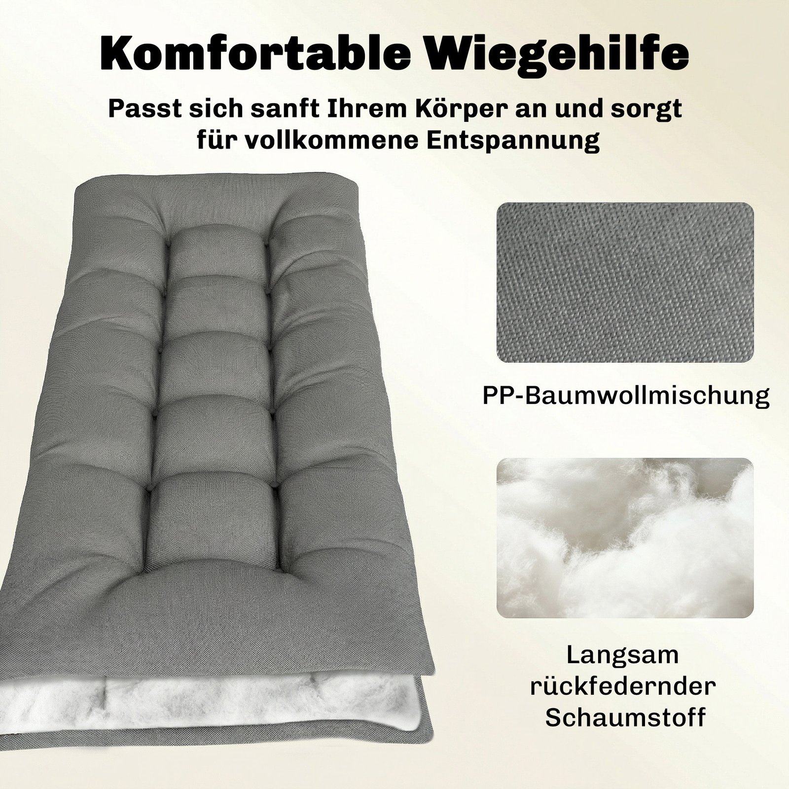 ✔ Dideli 198 x 65 cm matmenys užtikrina viso kūno atramą daugumai gultų, idealiai tinka kaip lauko sėdynės pagalvėlė