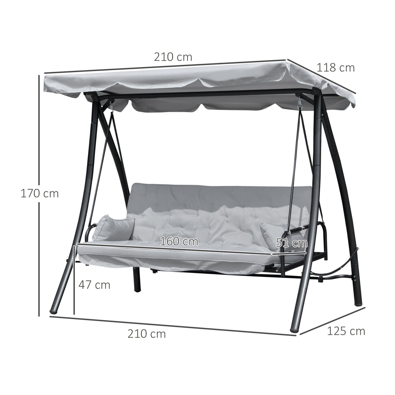 Atsisėskite patogiai ir mėgaukitės saulėtomis valandomis savo sode ant mūsų sūpuoklės su gulėjimo funkcija. Sūpuoklių suoliukas talpina iki 3 asmenų ir užtikrina aukščiausios klasės sėdėjimo komfortą dėl storai paminkštintos sėdynės ir atlošo. Rėmas pagamintas iš tvirto metalo, o sėdynės pagalvėlių užvalkalas – iš patvaraus poliesterio. Atlošas yra reguliuojamas, todėl suoliuką galima lengvai paversti sūpuokle-gultu.