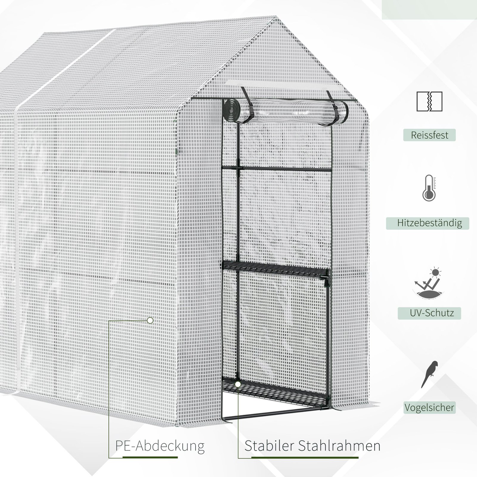 Ieškote būdo auginti augalus ištisus metus? Šis šiltnamis yra optimalus sprendimas. Plieninis rėmas užtikrina tvirtą pagrindą ir yra su PE plastiko danga, kuri apsaugo nuo oro sąlygų. Susukamos durys užtikrina lengvą prieigą. Viduje yra keturios lentynos, skirtos lengvam laikymui ir tvarkymui.