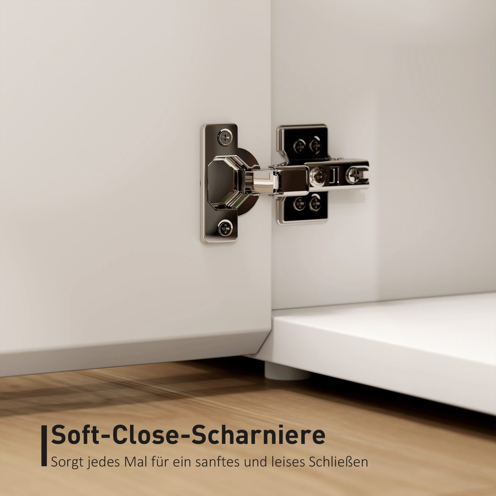 ✔ Žemos spintelės durys su švelnaus uždarymo funkcija apsaugo pirštus nuo įstrigimo, o rankenų neturinčios durys lengvai atsidaro