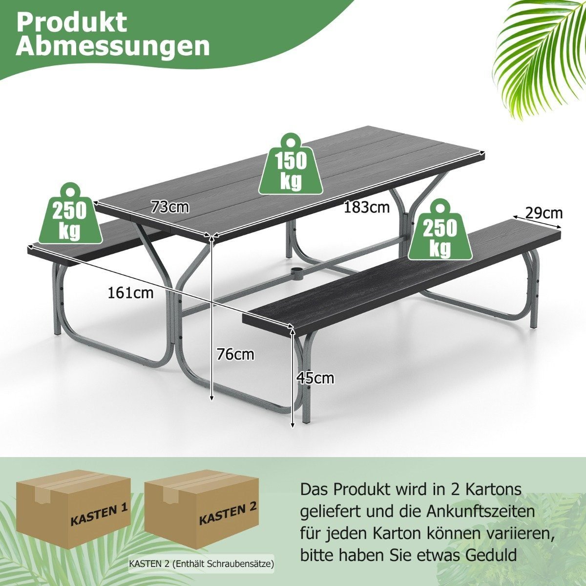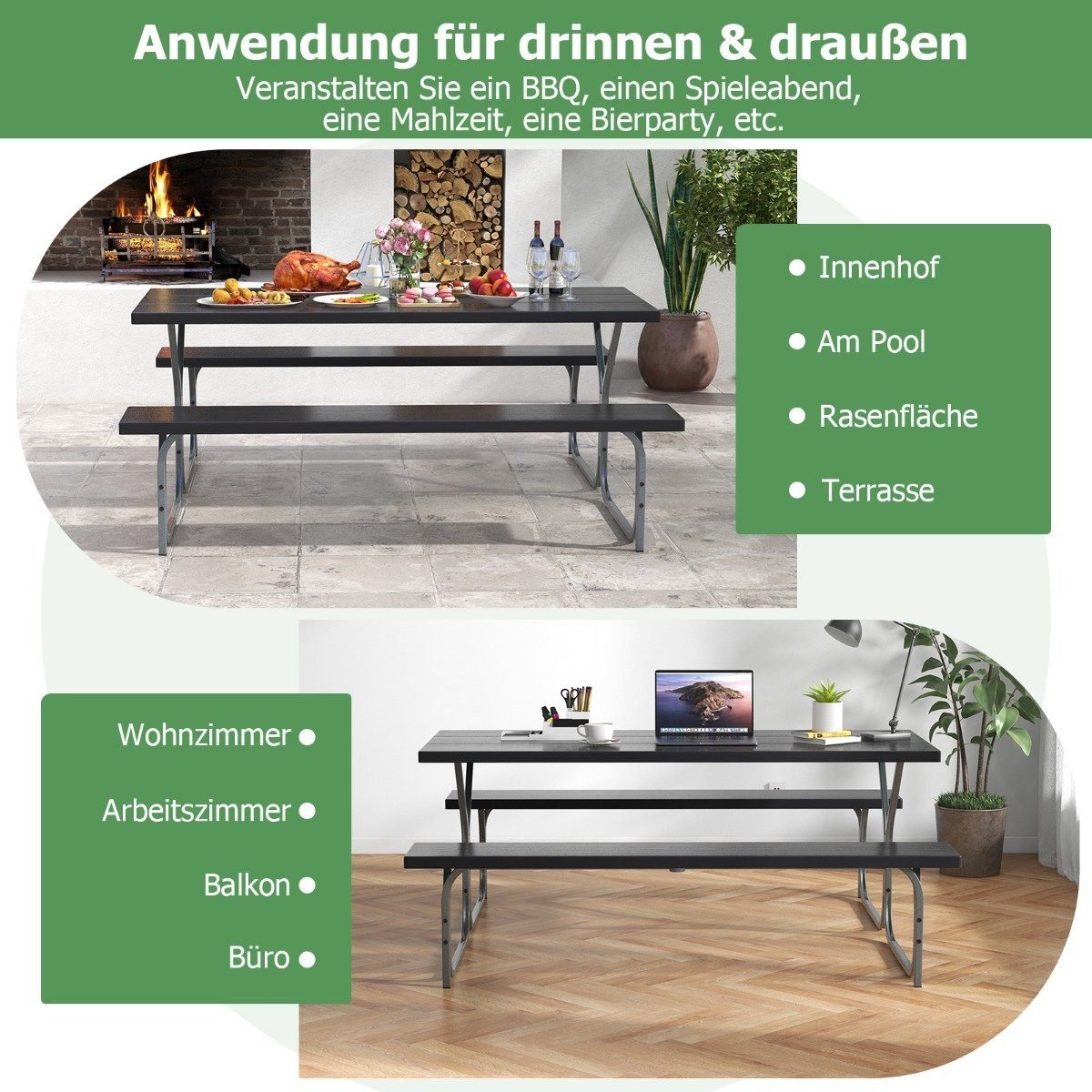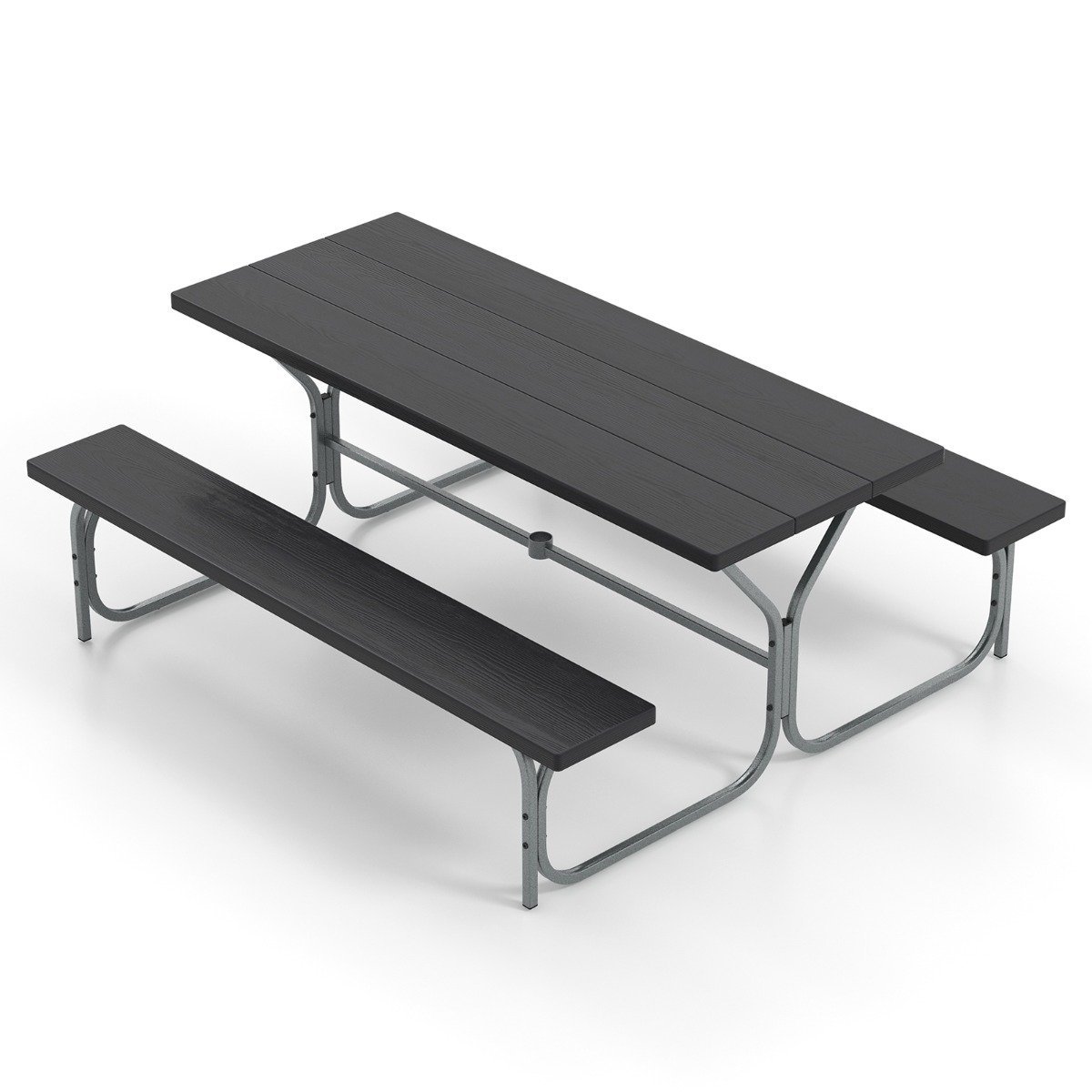Ilgas lauko pikniko stalas su suolais (Juoda)