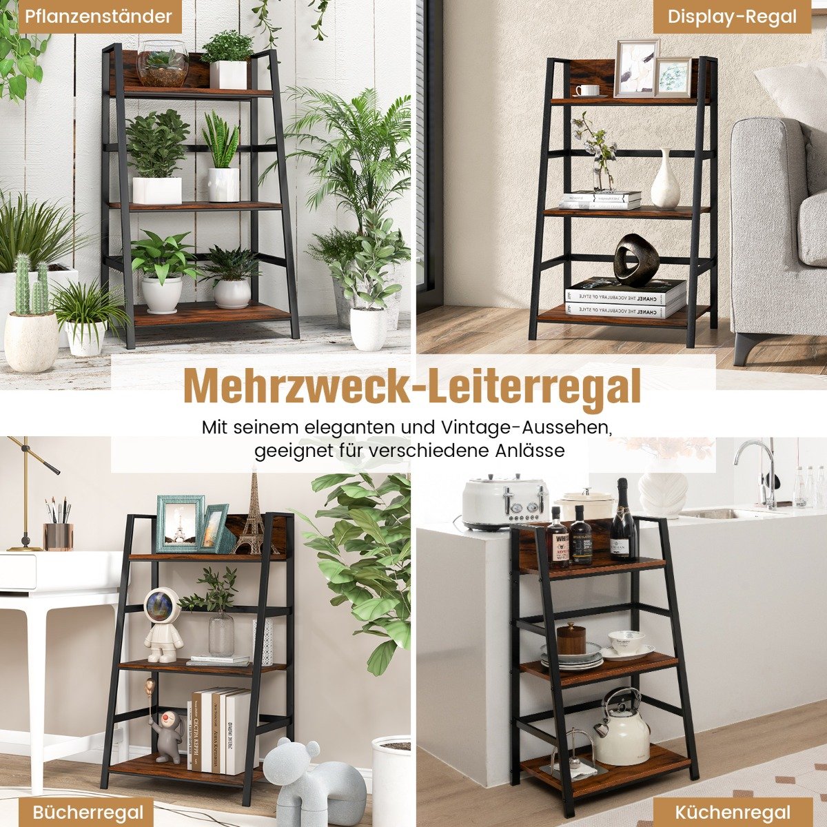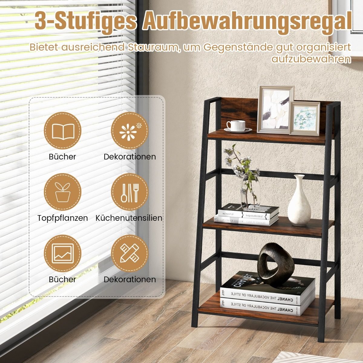 Industrinės 3 pakopų kopėčių formos lentynos su metaliniu rėmu (Ruduosios)