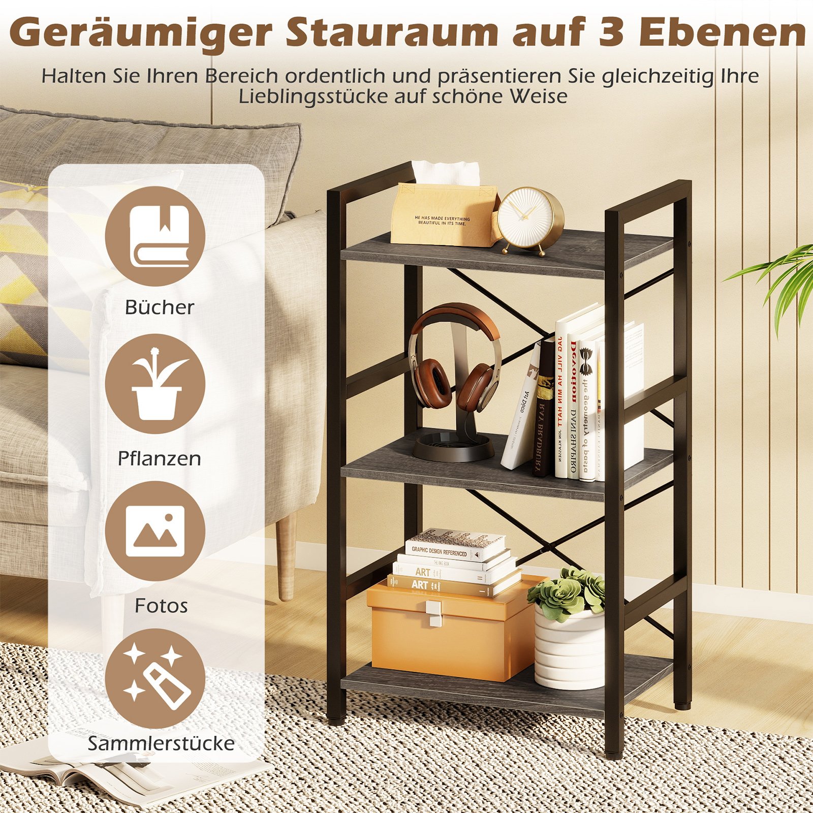 Industrinio stiliaus pastatoma 3 aukštų lentyna su metaliniu rėmu (Pilka)