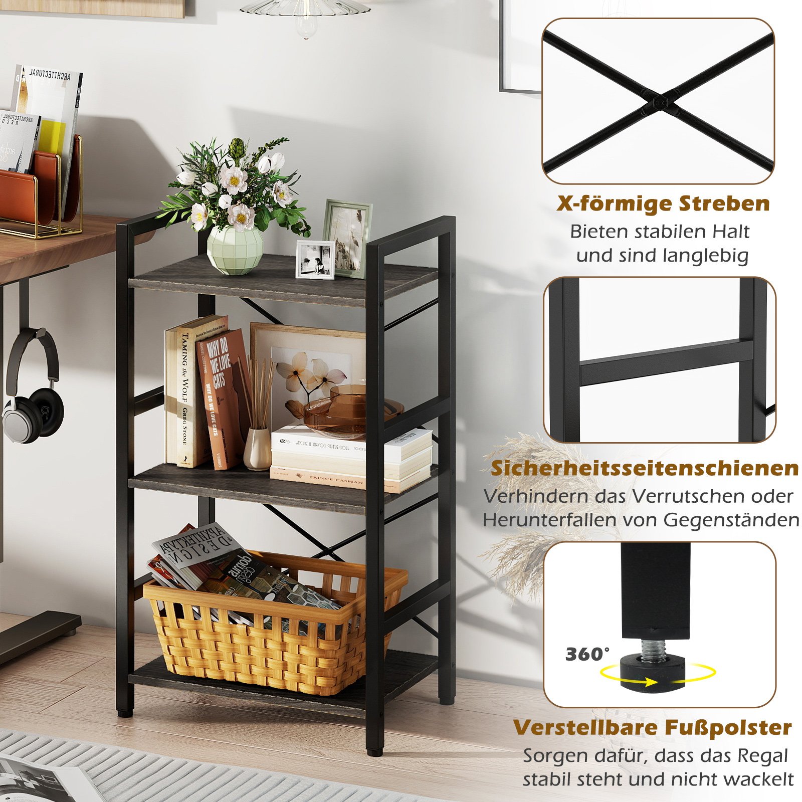 Pagerinkite savo erdvės organizavimą ir estetiką su šia kompaktiška ir patvaria 3 aukštų pastatoma lentyna. Su X formos rėmu, apsauga nuo apvirtimo ir reguliuojamomis kojelėmis, ši lentyna užtikrina aukštą stabilumą. Pagaminta iš patvarios medienos drožlių plokštės ir tvirto metalinio rėmo, ji puikiai tinka knygoms, augalams ar dekoracijoms laikyti ir padeda efektyviai išnaudoti turimą erdvę.