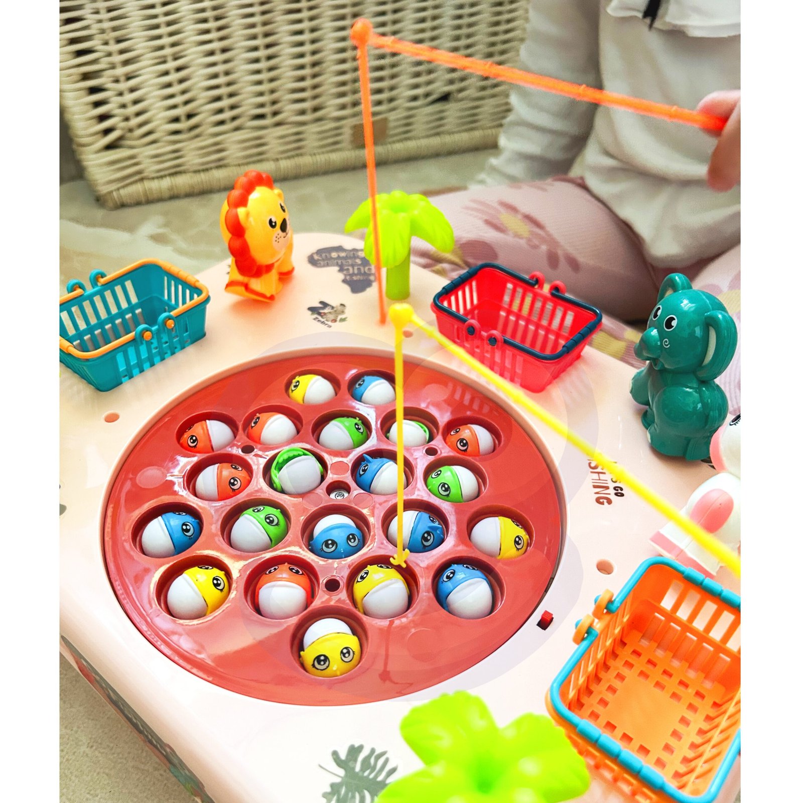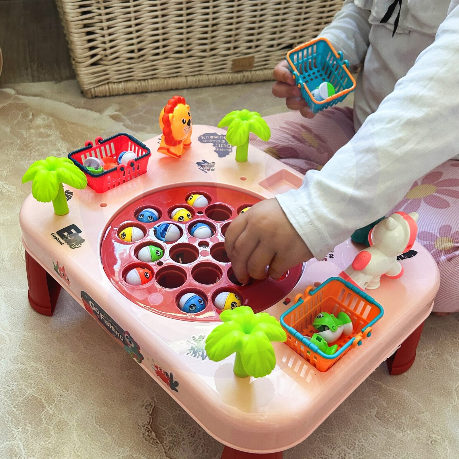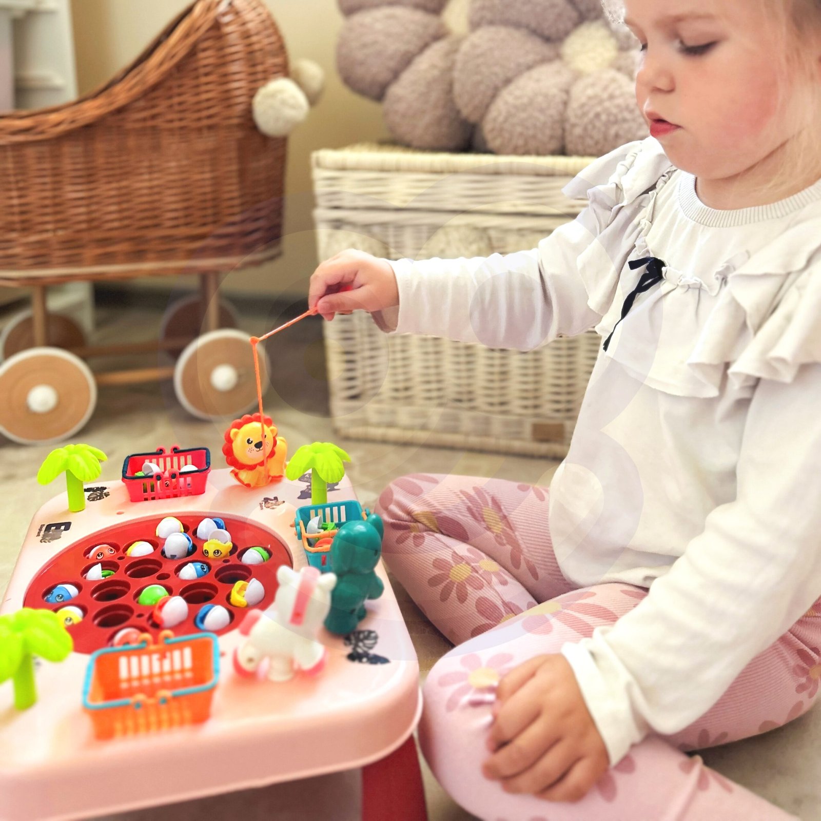 Interaktyvus žvejybos staliukas siūlo smagias pramogas visai šeimai! Šis žaidimas puikiai tinka bendriems žaidimams su šeima ar draugais. Iš tvirtų, kokybiškų medžiagų pagamintas staliukas yra ne tik patvarus, bet ir patrauklaus dizaino. Ryškus ir spalvingas staliuko dizainas traukia dėmesį, skatindamas linksmus ir aktyvius žaidimus.