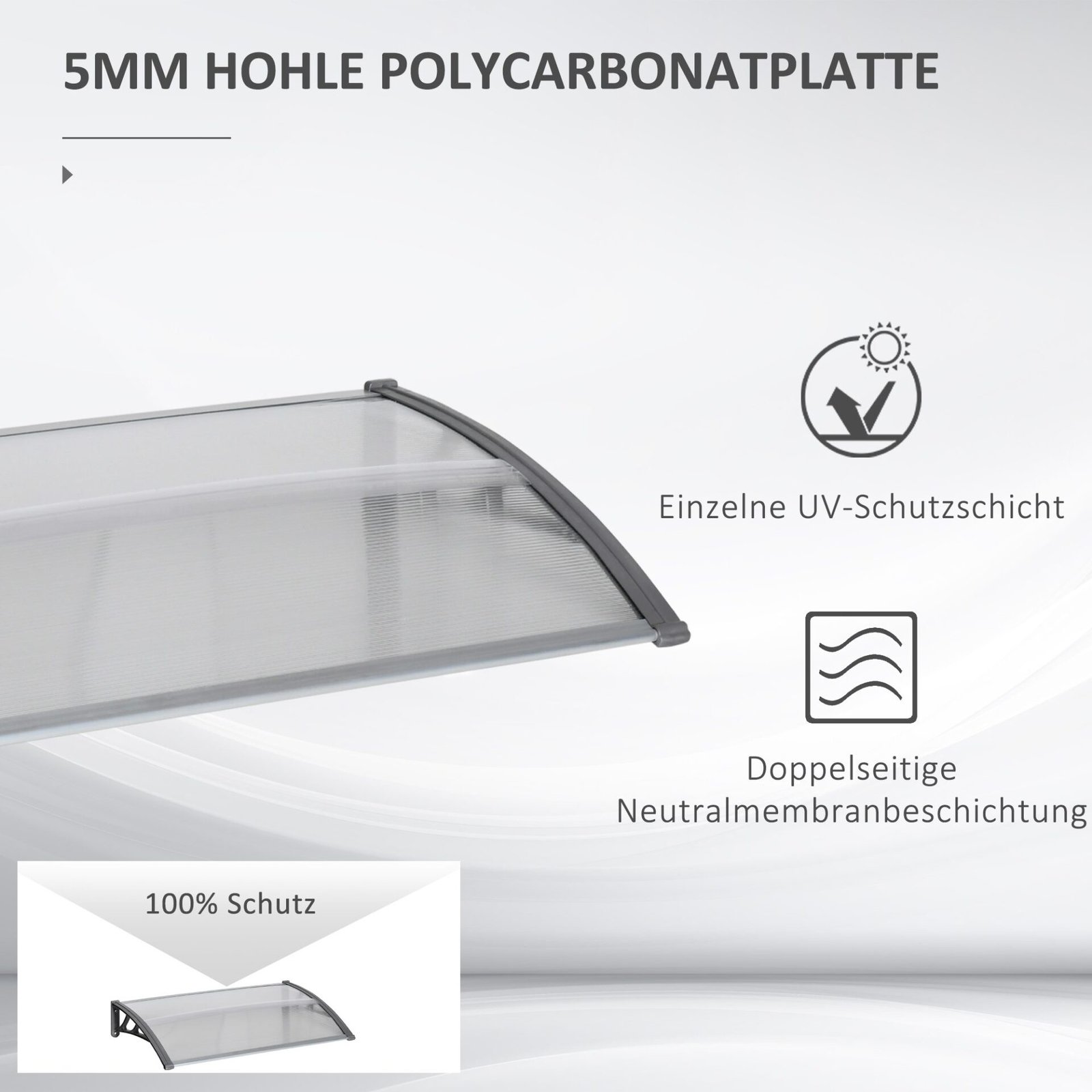 Stilingai pasitikite savo svečius su apsaugine stogine! Mūsų skaidrus stogelis įėjimo zonoms užtikrina ne tik apsaugą nuo UV spindulių, lietaus ir sniego, bet ir suteikia jūsų namams žavios gaivos. Mėgaukitės švelnia temperatūra ir sumažinkite akinimą su šiuo mažu pagelbėtoju. Įneškite grožio ir funkcionalumo į savo namus su mūsų elegantiška durų markize ir pasiruoškite stilingoms valandoms lauke.