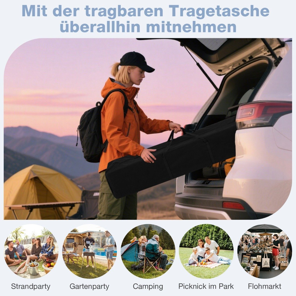 • Lengvas transportavimas ir universalumas: Kompaktiškai sulankstomas ir lengvai telpa pridedamame transportavimo krepšyje. Puikiai tinka stovyklavimui, vakarėliams, mugėms ar iškyloms.
