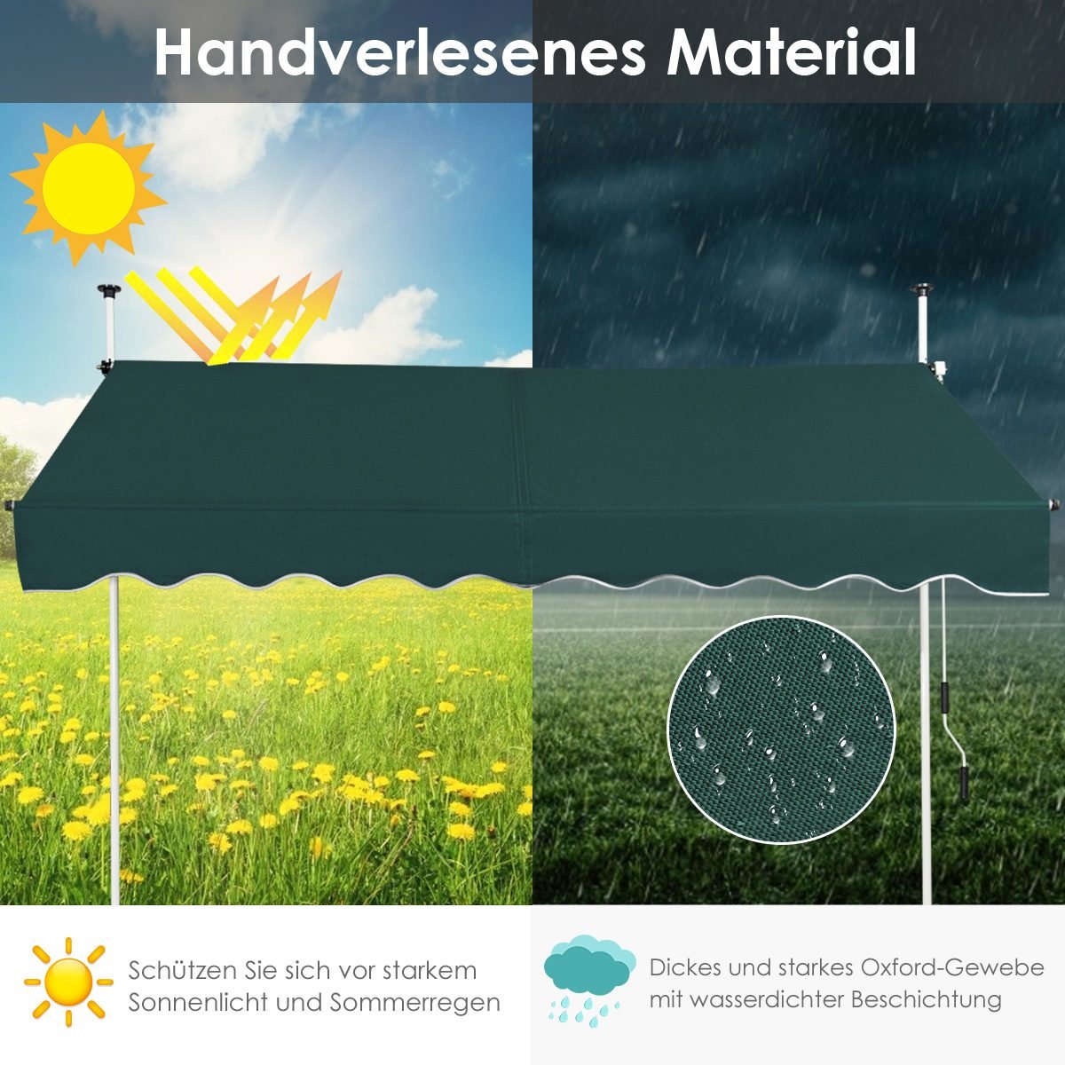 Suteikite savo lauko erdvei naują jaukumą su šia tvirta ir stilinga markize. Puikiai tinka apsisaugoti nuo saulės spindulių terasoje, balkone ar sode.
