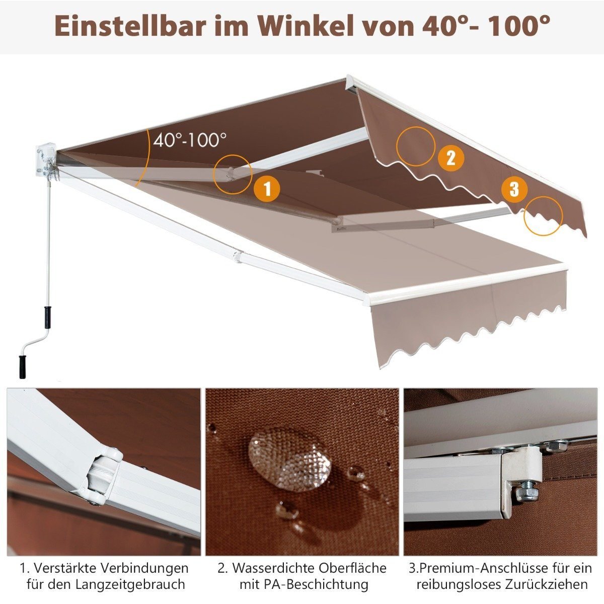 Ištraukiama markizė 2 5 x 2 m su rankena atspari UV ir vandeniui (Ruda)