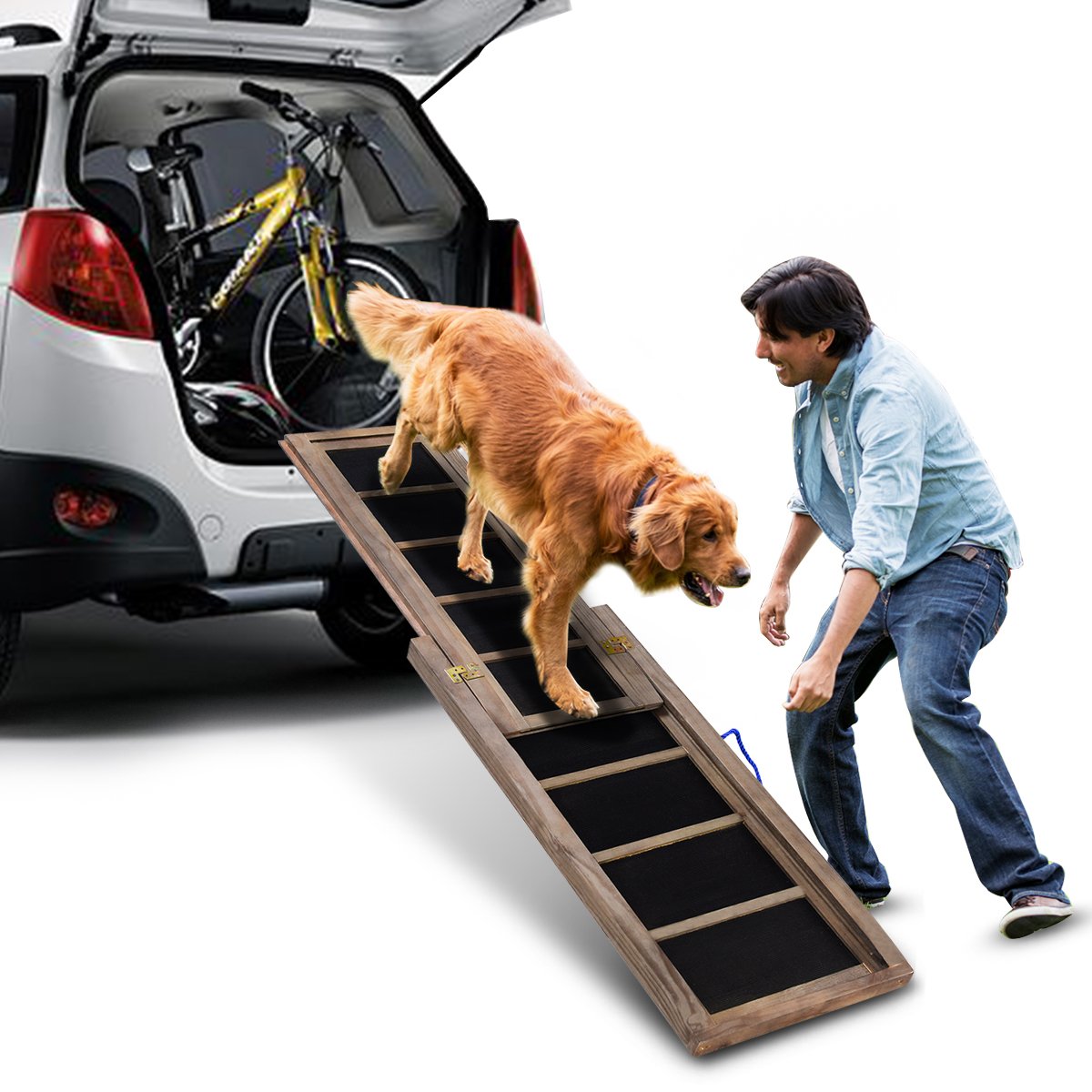 Ištraukiama medinė rampa šunims su neslystančiu paviršiumi (Natūrali medžio)