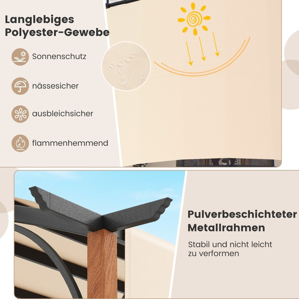 Ištraukiama sodo pergola 3 6 x 3 m (Smėlio)
