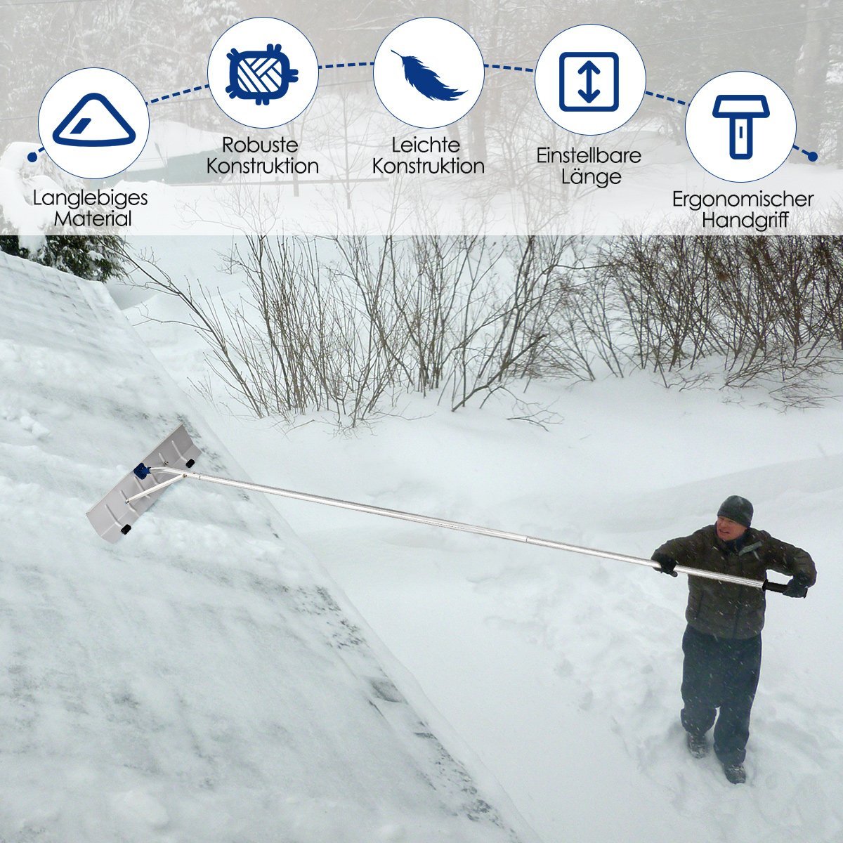 Palengvinkite stogo priežiūrą su mūsų universaliu sniego valytuvu. Sukurtas saugumui ir efektyvumui, jis leidžia lengvai pašalinti sniegą, lapus ir kitus nešvarumus, stovint ant žemės. Ergonomiškas ir lengvas dizainas sumažina fizinį krūvį.