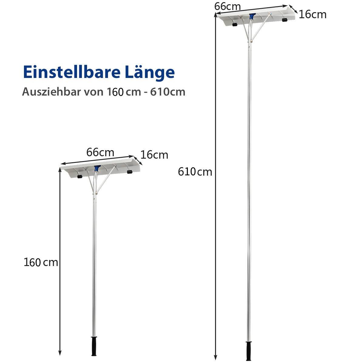 - Ištraukiama rankenos ilgis: 160 – 610 cm