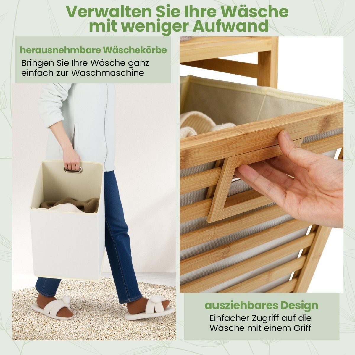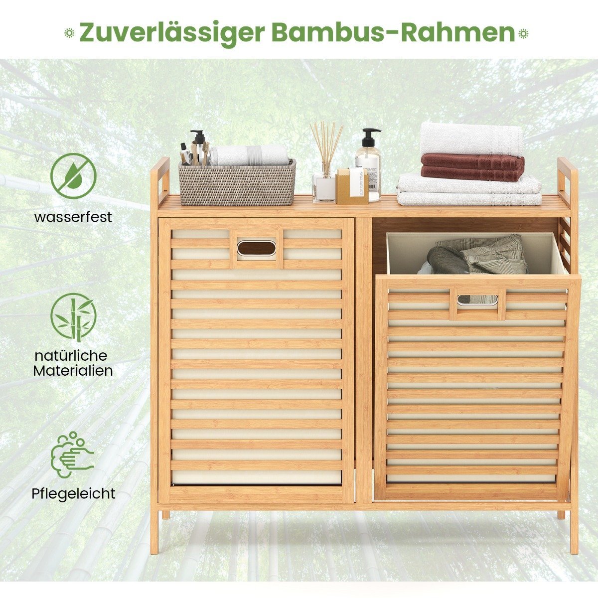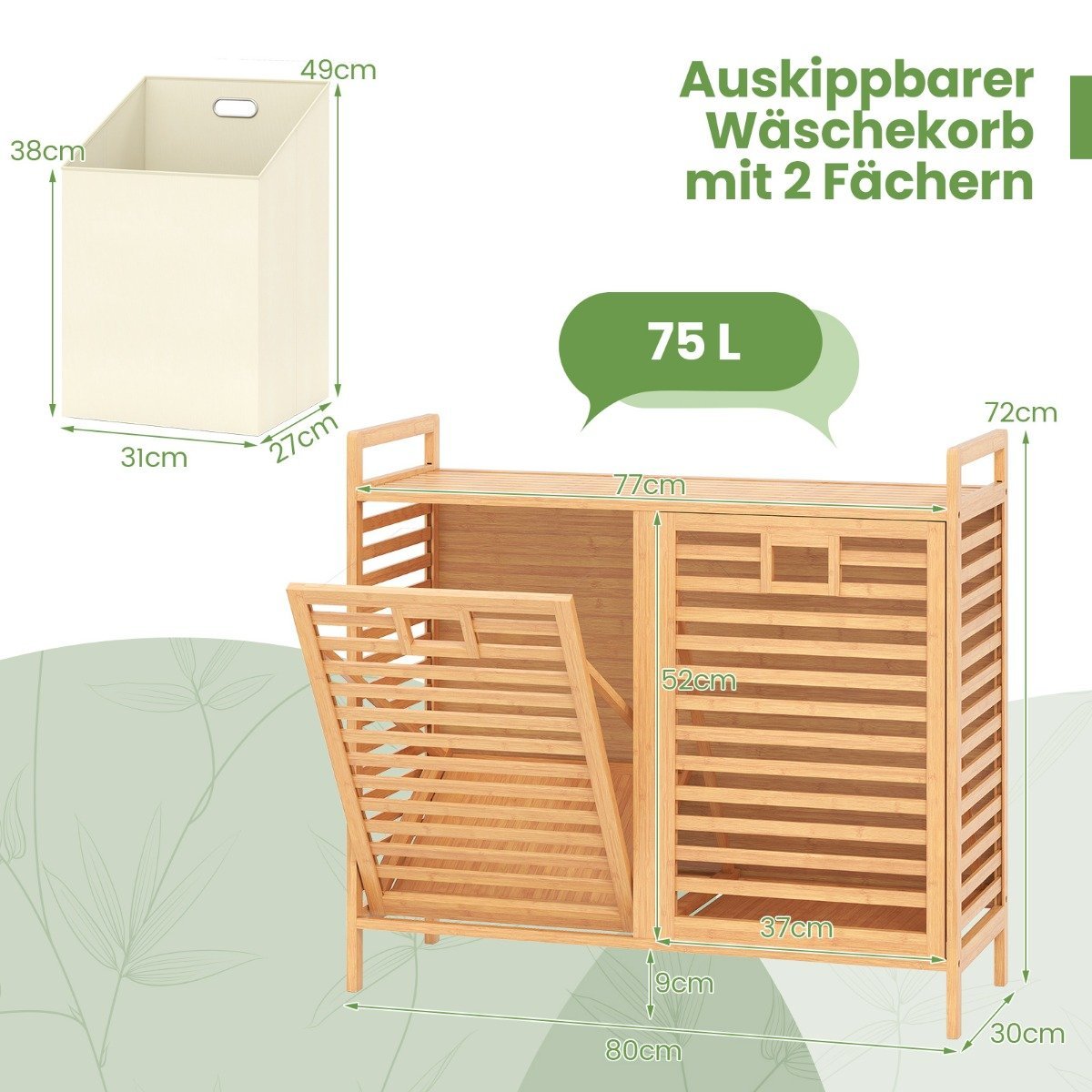 - 1 x Dviejų skyrių ištraukiamas skalbinių krepšys