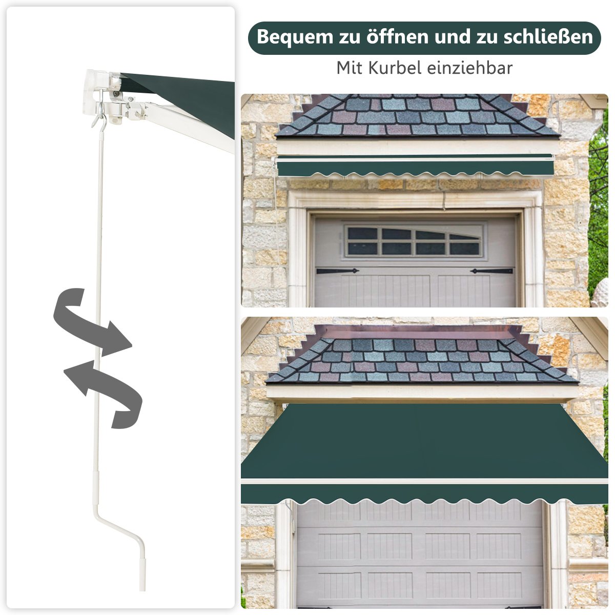 Įtraukiama 3×2 5 m markizė su rankena (Žalia)