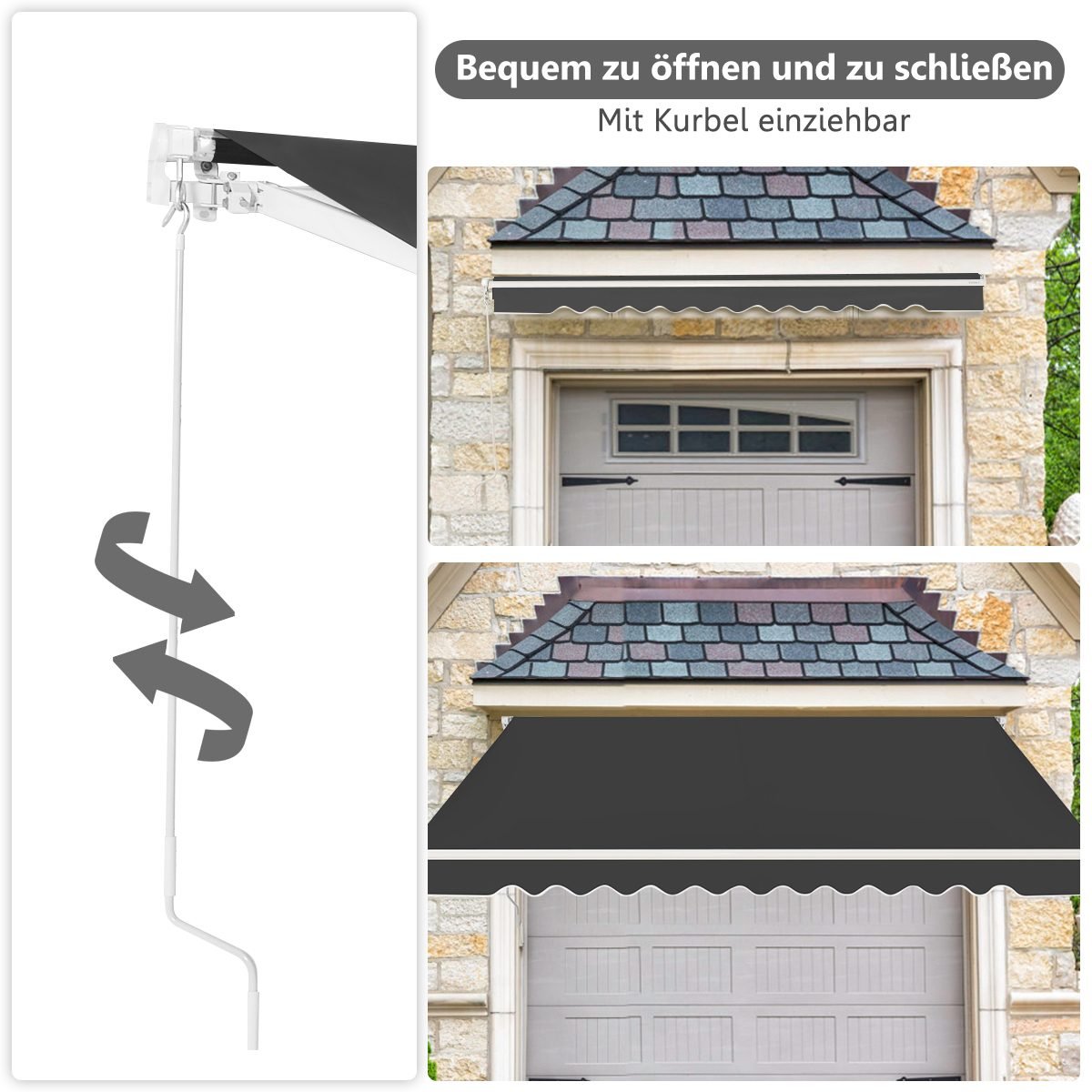 Įtraukiama markizė su rankena aliuminio apsauga nuo saulės 3×2 5 m (Pilka)