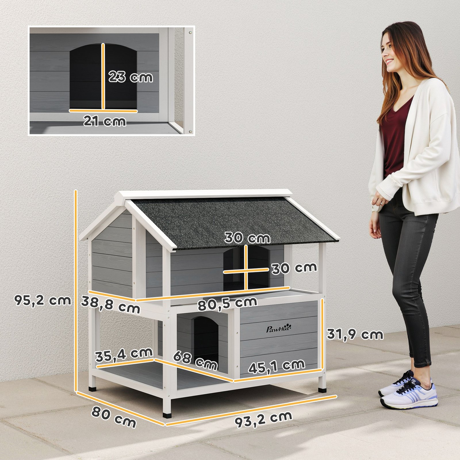 ✔ Erdvus dviejų aukštų kačių namelio dizainas su platformomis suteikia daug vietos kelioms katėms