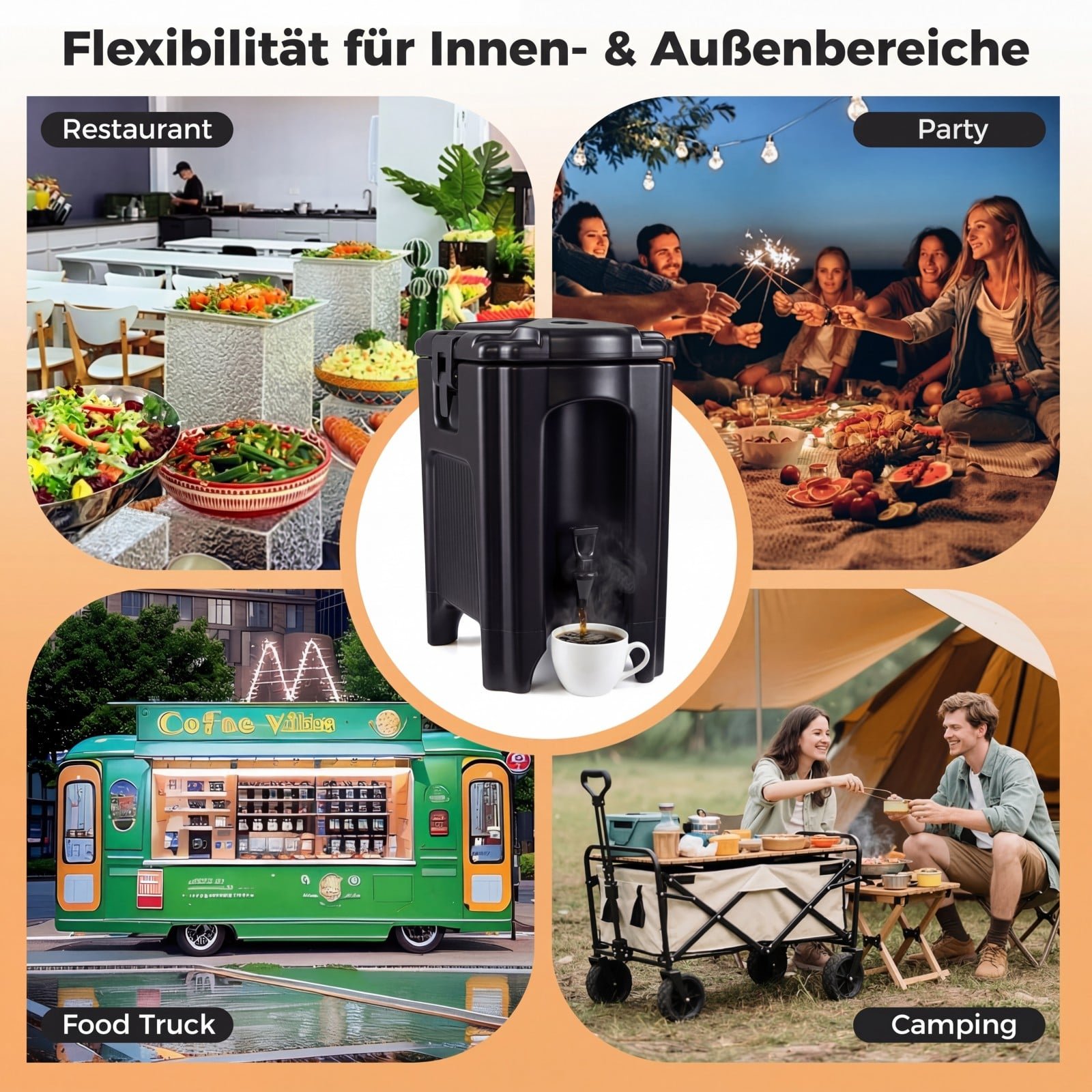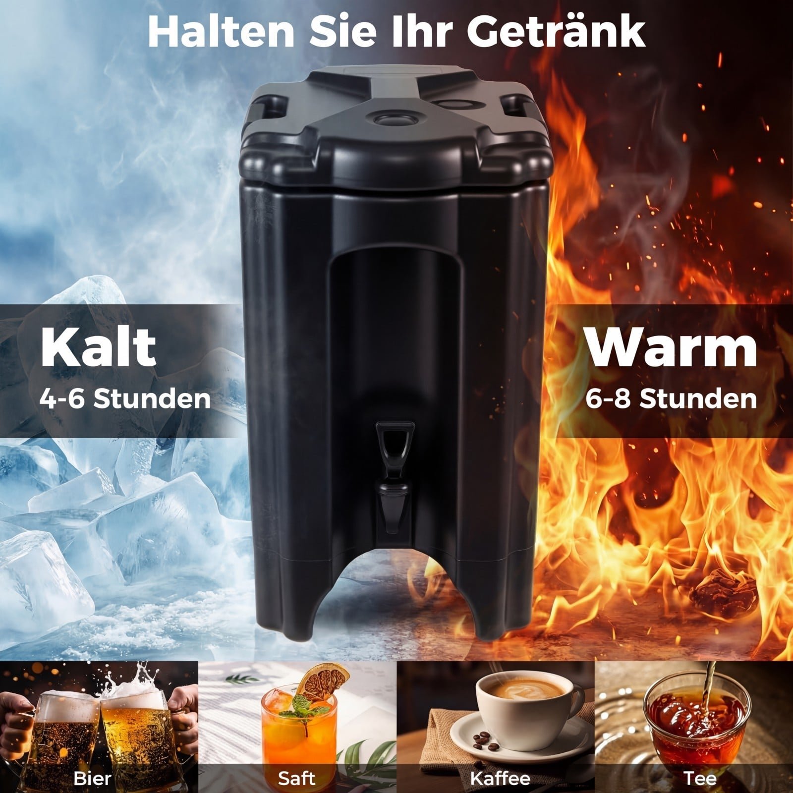 Šis kruopščiai suprojektuotas izoliuotas gėrimų dalytuvas užtikrina, kad karšti ir šalti gėrimai ilgą laiką išliktų tinkamos temperatūros. Trijų sluoksnių konstrukcija efektyviai išlaiko gėrimus karštus iki 6-8 valandų ir vėsius iki 4-6 valandų. 16,5 L talpos gėrimų indas puikiai tinka didesnėms žmonių grupėms aptarnauti, sumažinant poreikį dažnai pildyti.