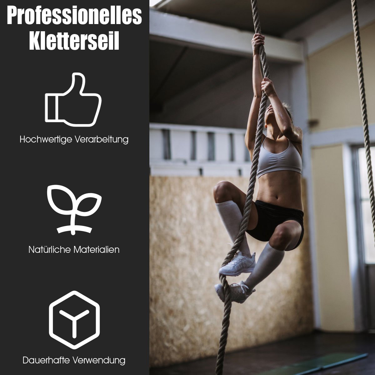 Padidinkite treniruočių intensyvumą, pagerinkite lankstumą ir sustiprinkite raumenis su šia aukštos kokybės natūralios jutės laipiojimo virve. Ji skirta įvairioms treniruočių variacijoms ir puikiai tinka tiek vyrams, tiek moterims, tiek jauniems, tiek vyresnio amžiaus žmonėms.