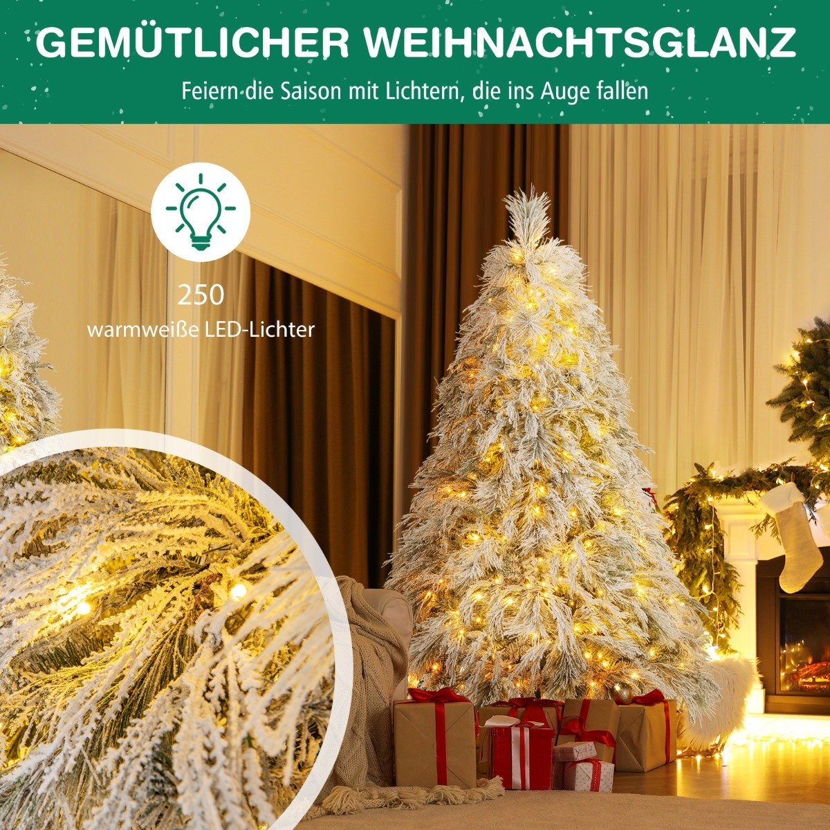 - 250 šiltų baltų LED lempučių suteikia nepakartojamą šventiškumo jausmą.