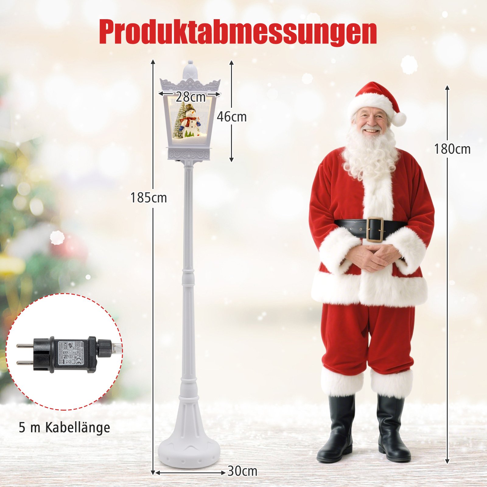 Kalėdinė gatvės žibinto LED dekoracija su sniego efektu ir muzika (Balta)