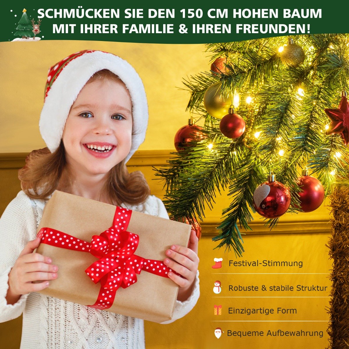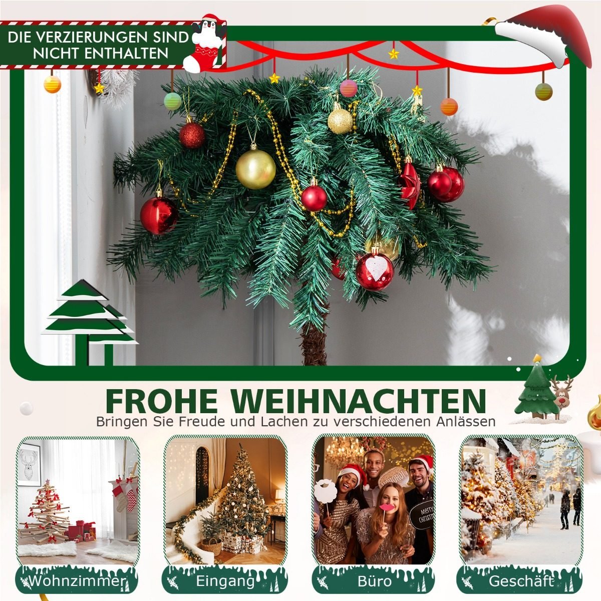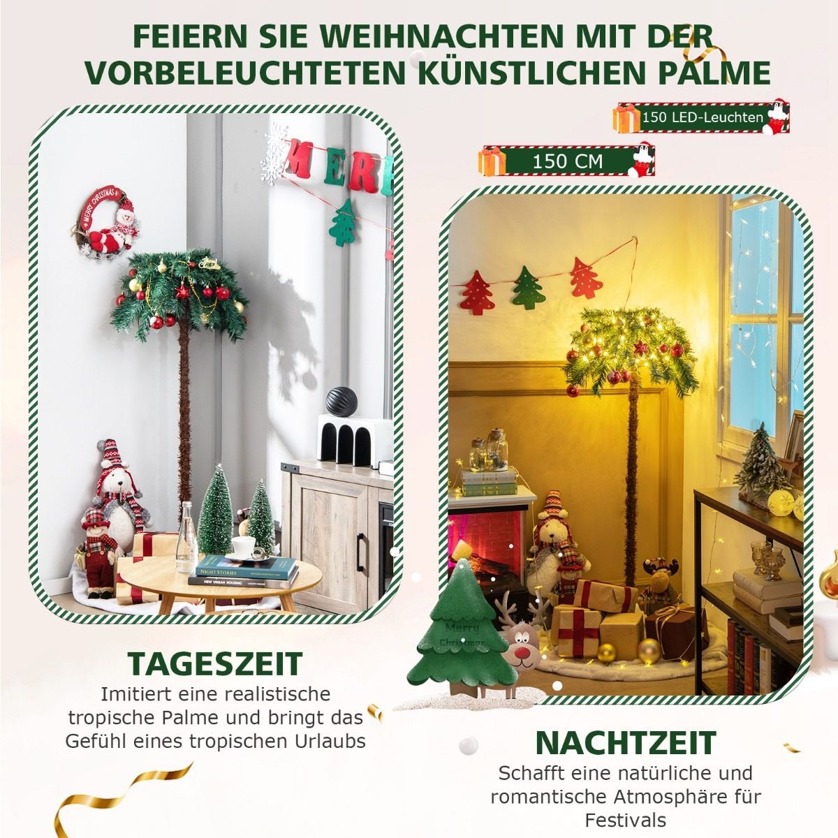 Suteikite džiaugsmo ir šventinės nuotaikos savo namams su unikalia kalėdine dekoracija! Ši 150 cm aukščio dirbtinė kalėdinė palmė ne tik puikiai tiks mažesnėms erdvėms, bet ir suteiks jaukumo bei egzotiško prieskonio jūsų šventėms.