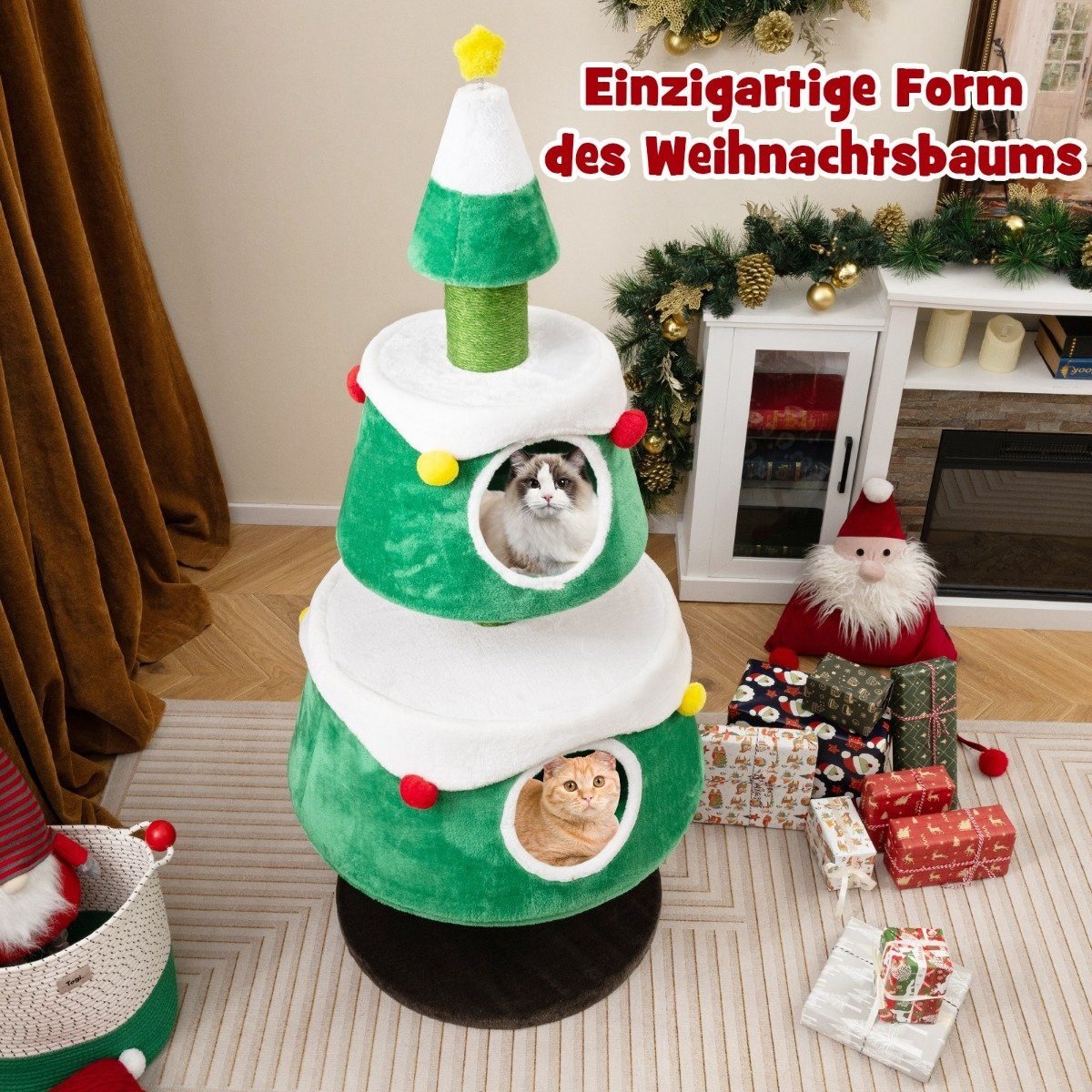 Suteikite savo augintiniui komfortą ir pramogas su šia daugiafunkce draskykle. Unikalus kalėdinės eglutės formos dizainas ne tik pradžiugins jūsų katę, bet ir taps stilingu namų akcentu. Tvirti, storesni stulpai patenkins natūralų jūsų katės poreikį draskyti, taip apsaugodami jūsų baldus.
