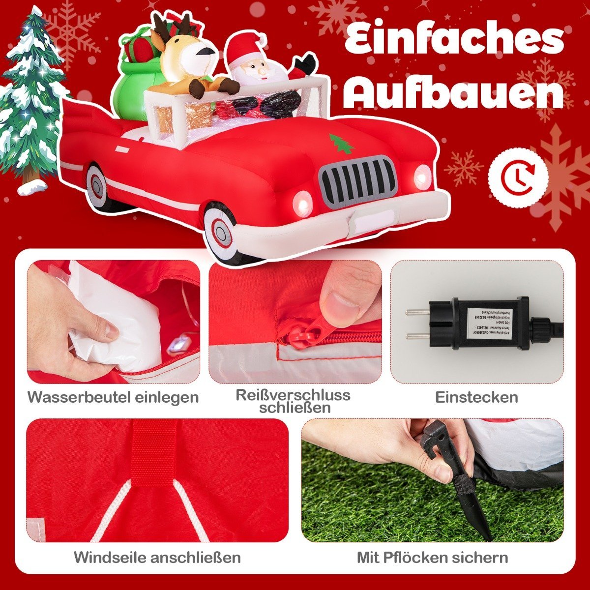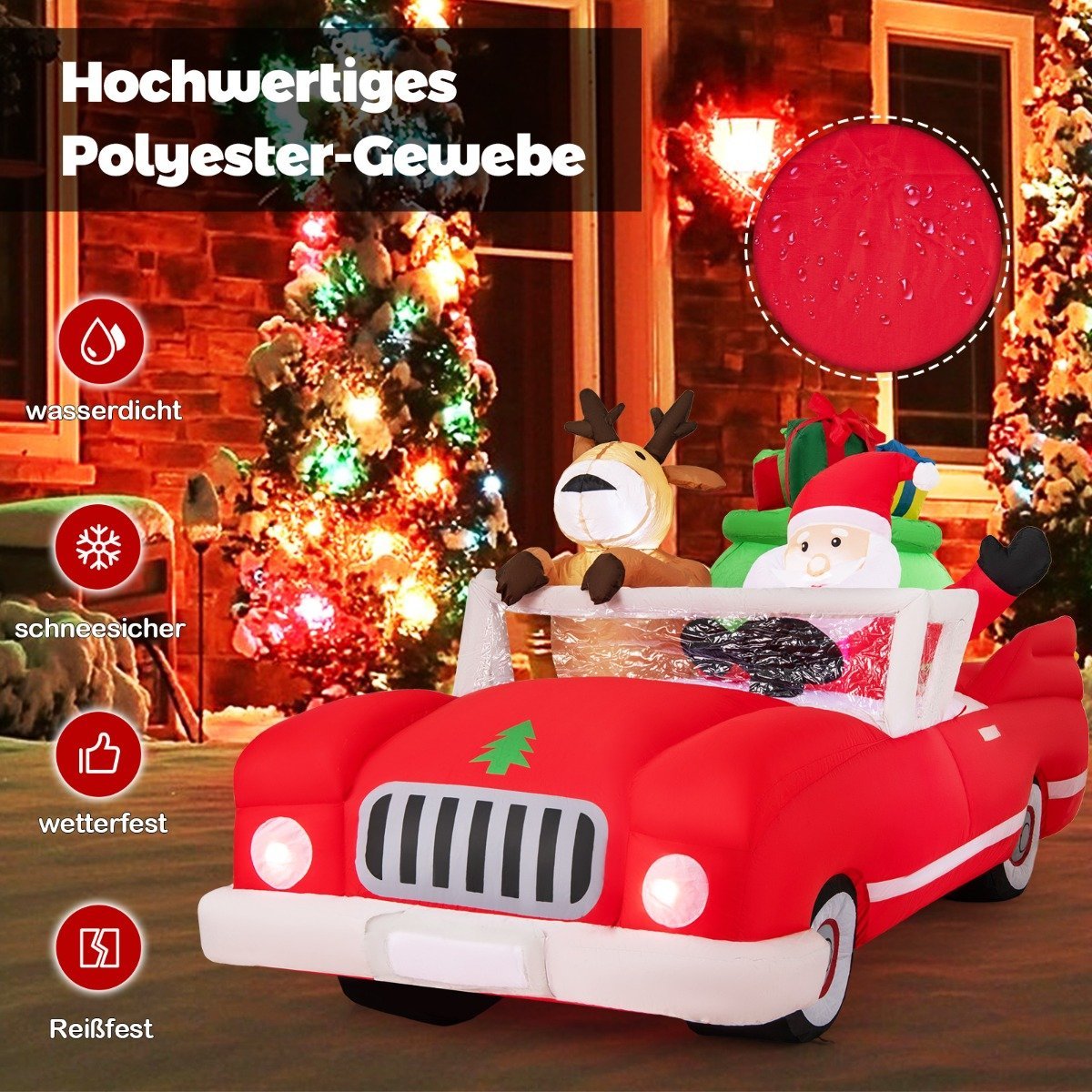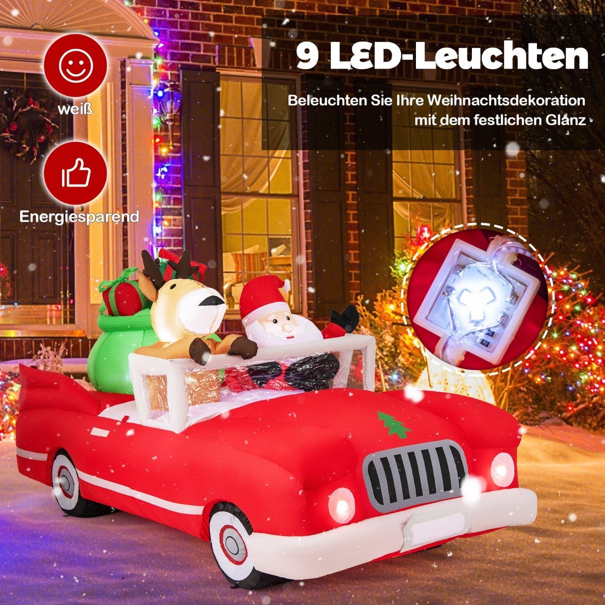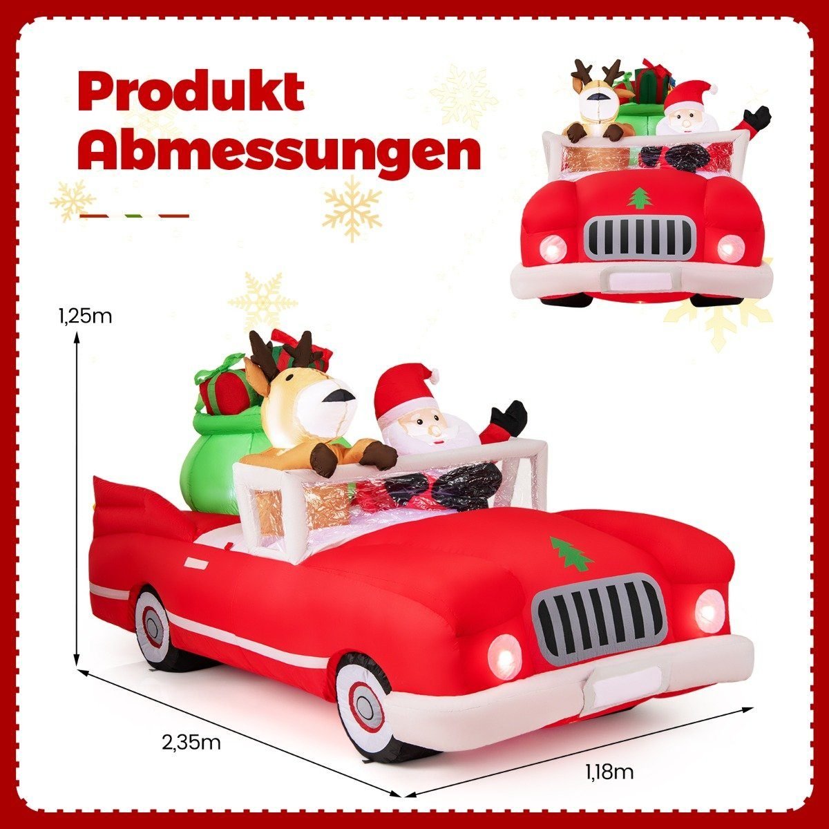 Kalėdinis pripučiamas automobilis su dovanų maišu ir LED apšvietimu (Raudona)