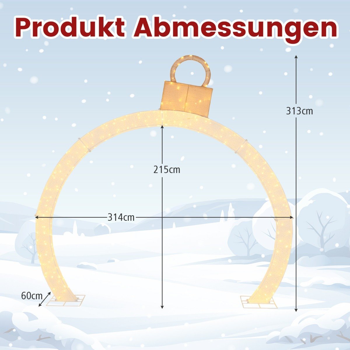Sukurkite nepakartojamą šventinę atmosferą su šiuo įspūdingu, 313 cm aukščio šviečiančiu kalėdiniu portalu. Tai ne tik stulbinanti dekoracija, bet ir šventinės dvasios simbolis, kuris pasitiks Jūsų svečius ir sukurs tikrą magišką pasakojimą.