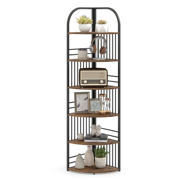 Išnaudokite kiekvieną namų kampelį su šia elegantiška 6 lygių kampine knygų lentyna. Sukurta paversti nenaudojamas erdves stilingomis ir funkcionaliomis saugojimo vietomis, ji išsiskiria tvirta metaline konstrukcija ir elegantiškais lentynų paviršiais. Kiekviena lentyna atlaiko iki 15 kg svorį, suteikdama pakankamai vietos knygoms, dekoracijoms ar augalams ir užtikrindama puikų stabilumą.
