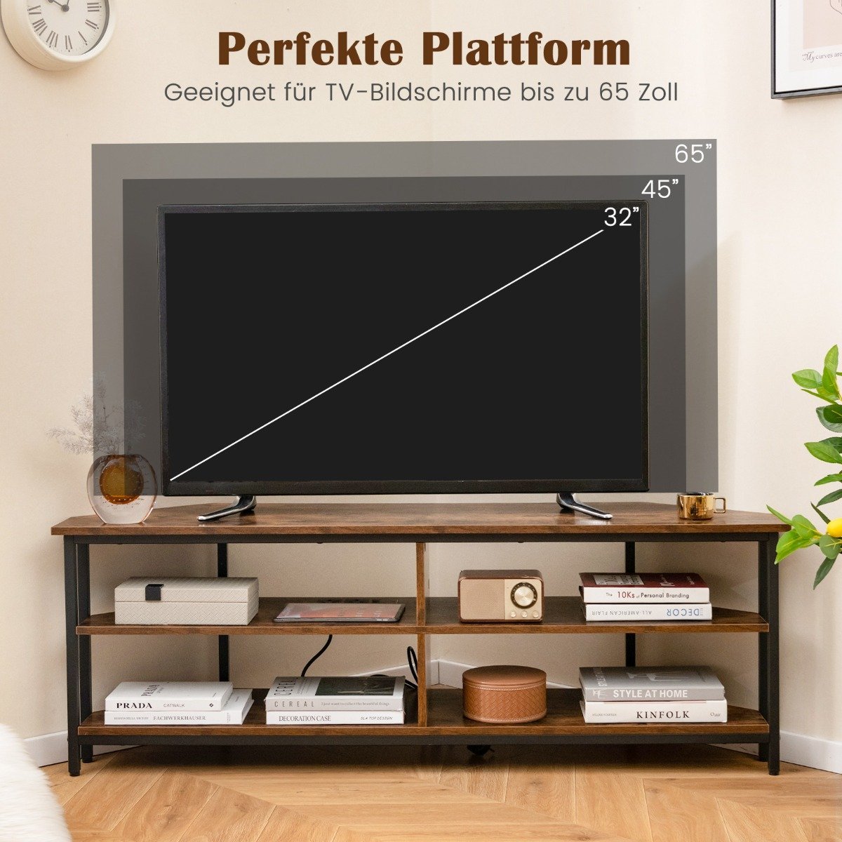 Kampinė TV spintelė su įkrovimo stotele (Rudas)