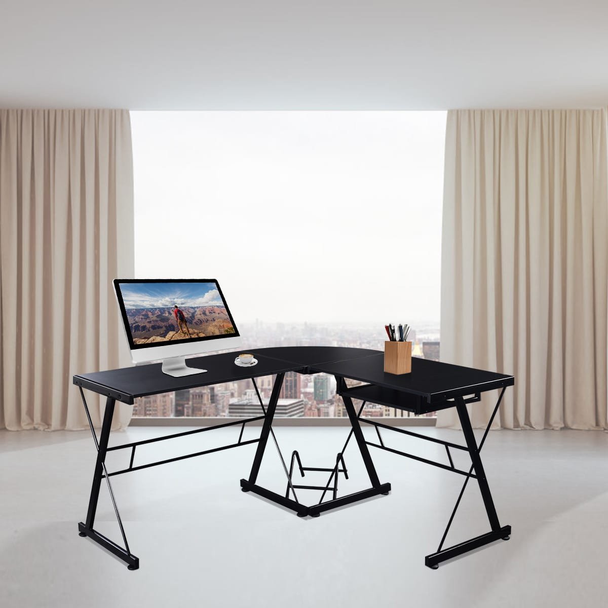 Šis kampinis, L formos rašomasis stalas – tai tobulas kūrybiškumo, paprastumo ir modernumo derinys. Pagamintas iš metalinių vamzdžių ir aukštos kokybės MDF plokštės, jis pasižymi tvirtumu ir ilgaamžiškumu. Modernus dizainas bei preciziškas apdirbimas užtikrina šio rašomojo stalo populiarumą. Nepaisant kompaktiškų matmenų, stalas siūlo didelę darbo erdvę, kurioje patogiai sutalpinsite dokumentus, spausdintuvą, garsiakalbius ir kitus reikalingus daiktus. Stalas idealiai tinka tiek svetainei, tiek darbo kambariui ar biurui.