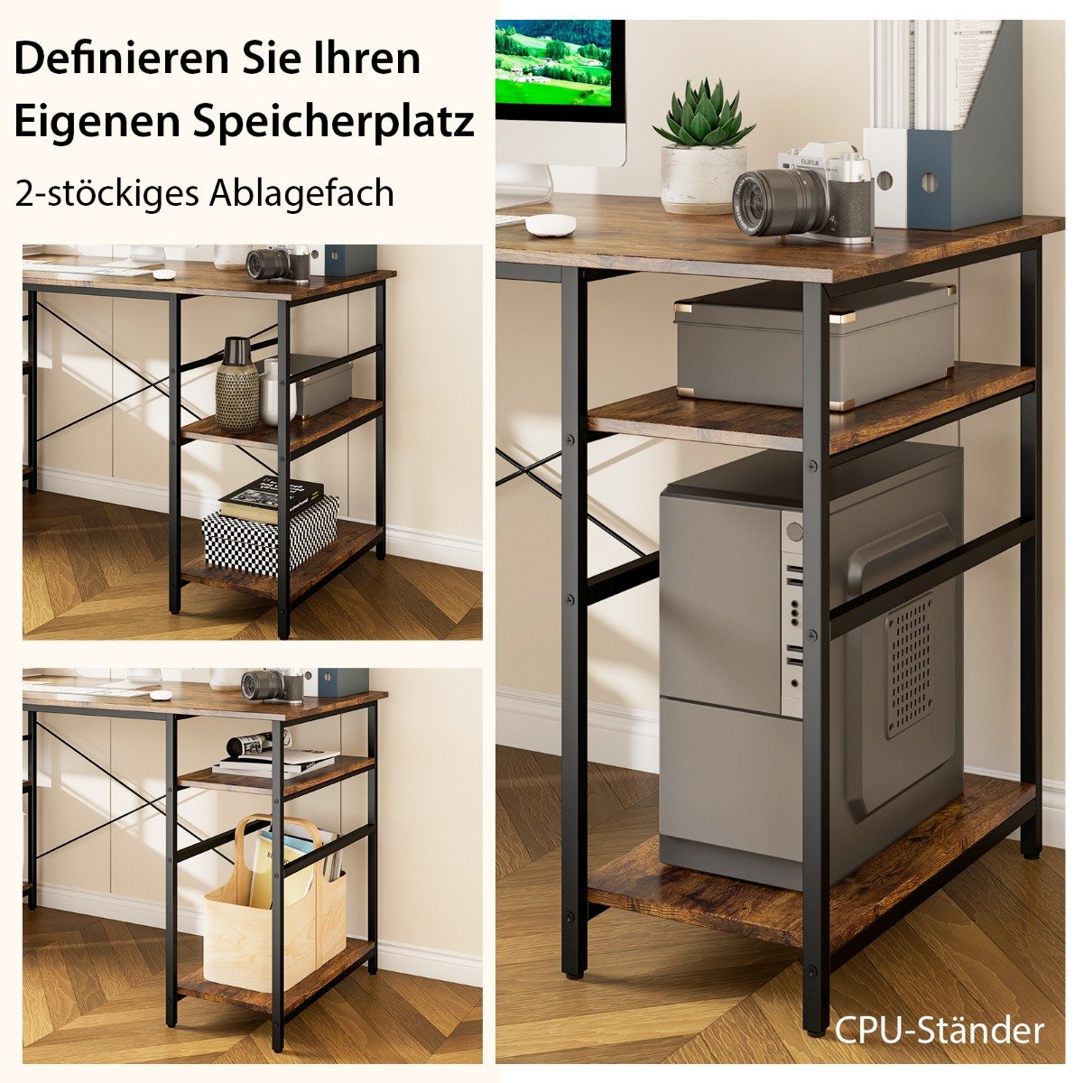 - Daug vietos darbui: erdvus stalviršis ir 4 papildomos lentynos daiktams laikyti.