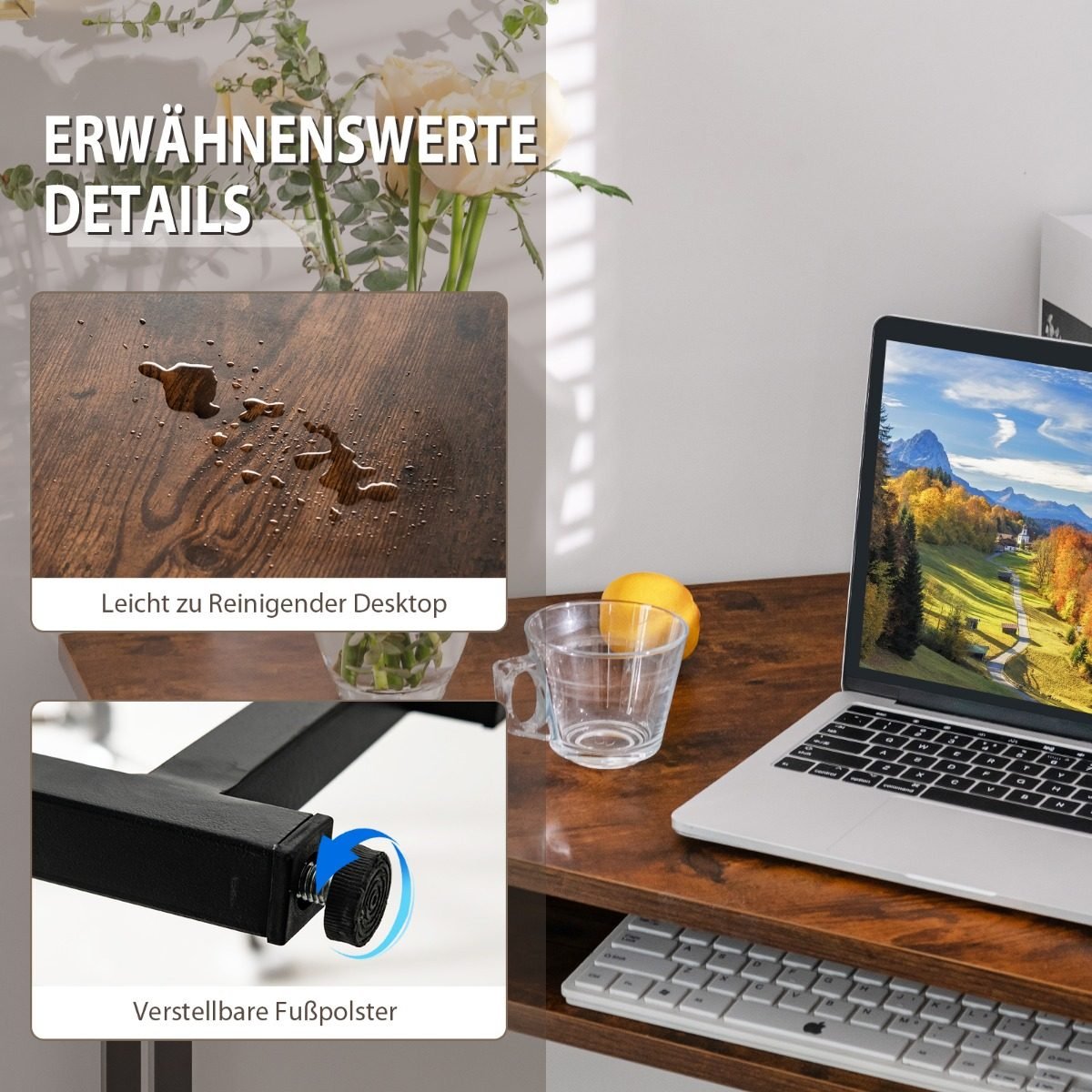 - Tvirtas plieno rėmas ir patvari medžio drožlių plokštė užtikrina stabilumą.